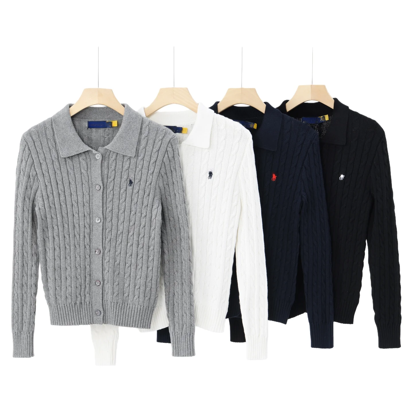 2026 New Custom logo Casual Slim-fit Knit Sweater for Women Ralph Button Cardigan Style Vintage Classic Polo-Neck Female Knit