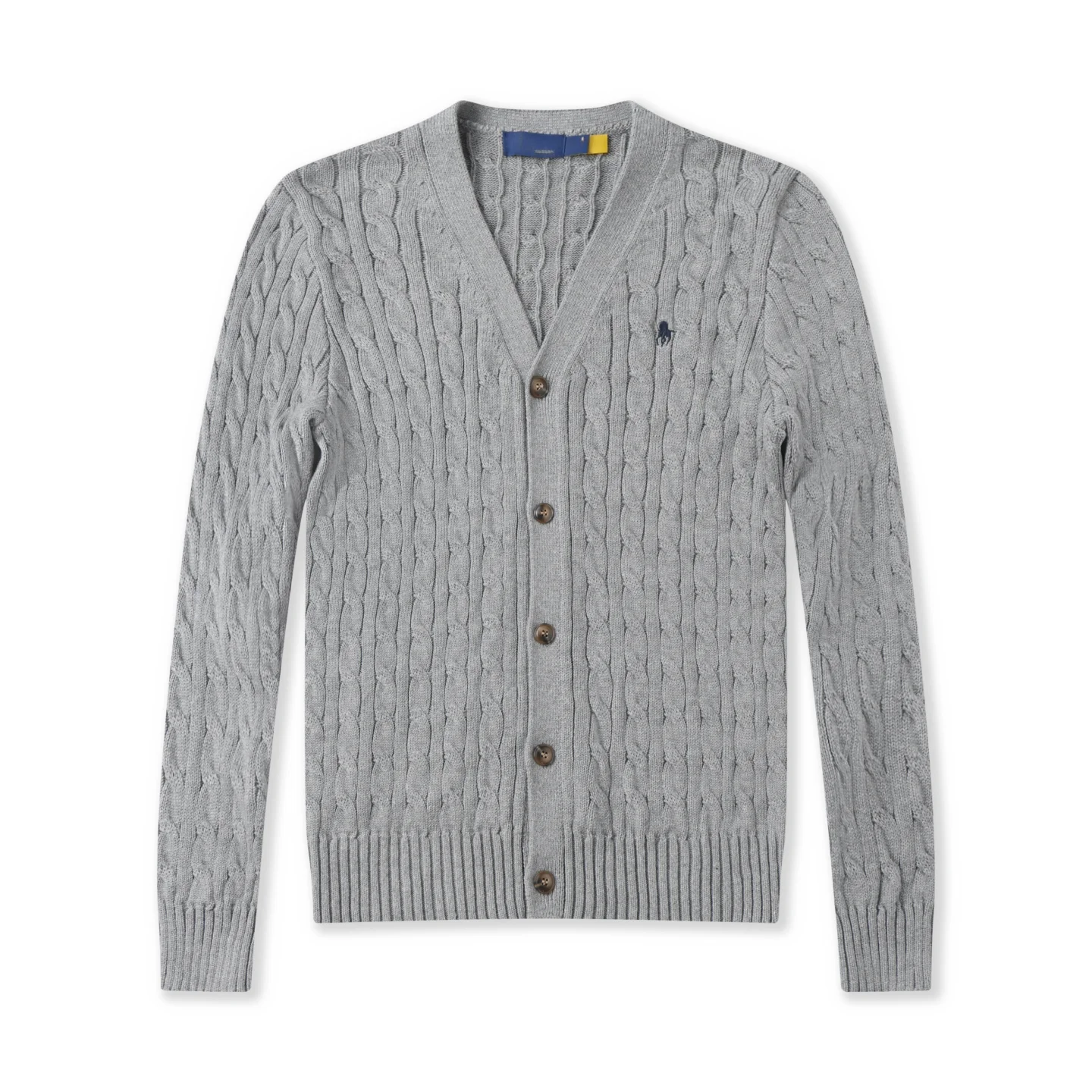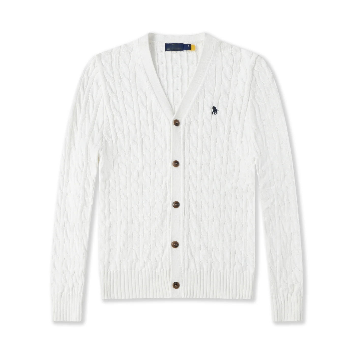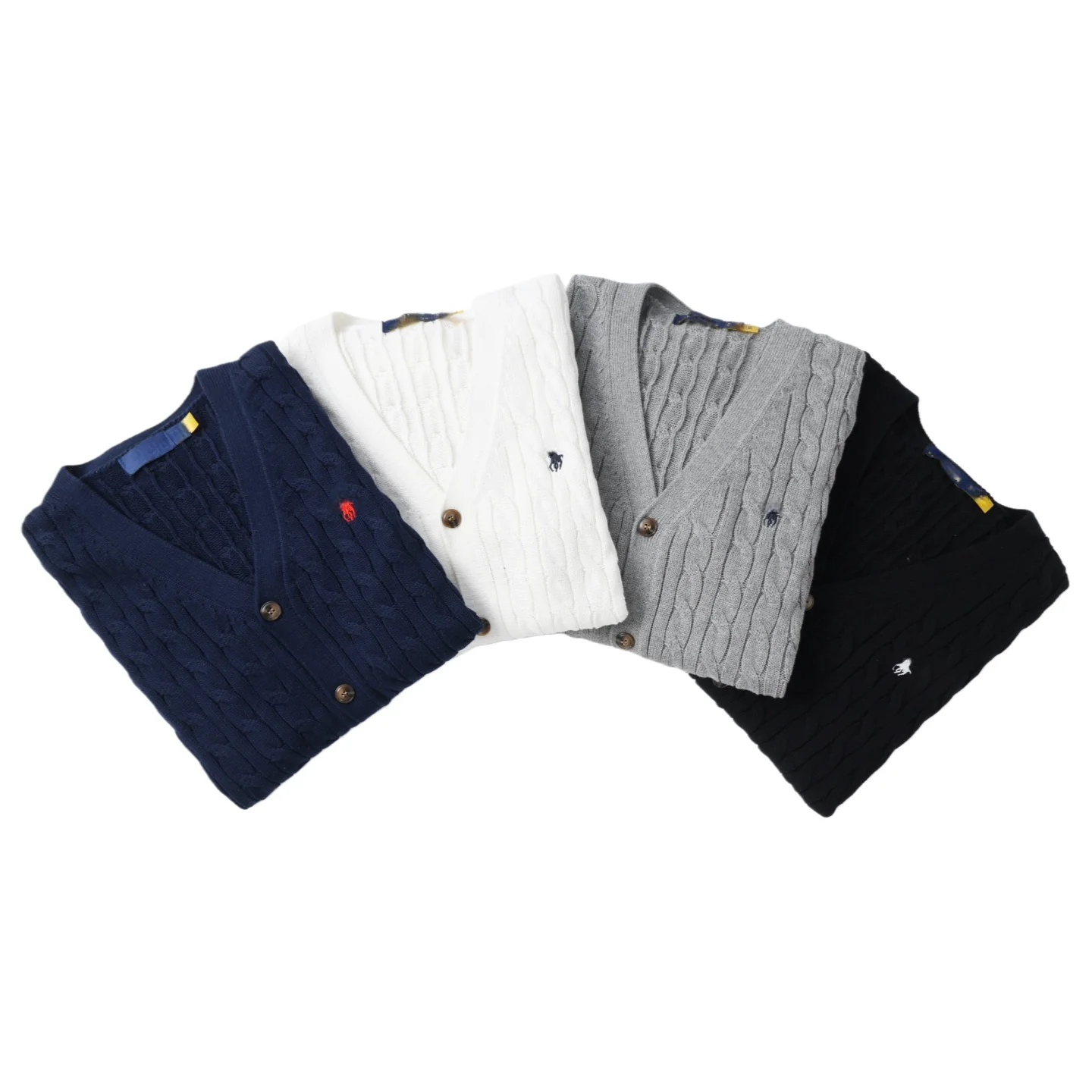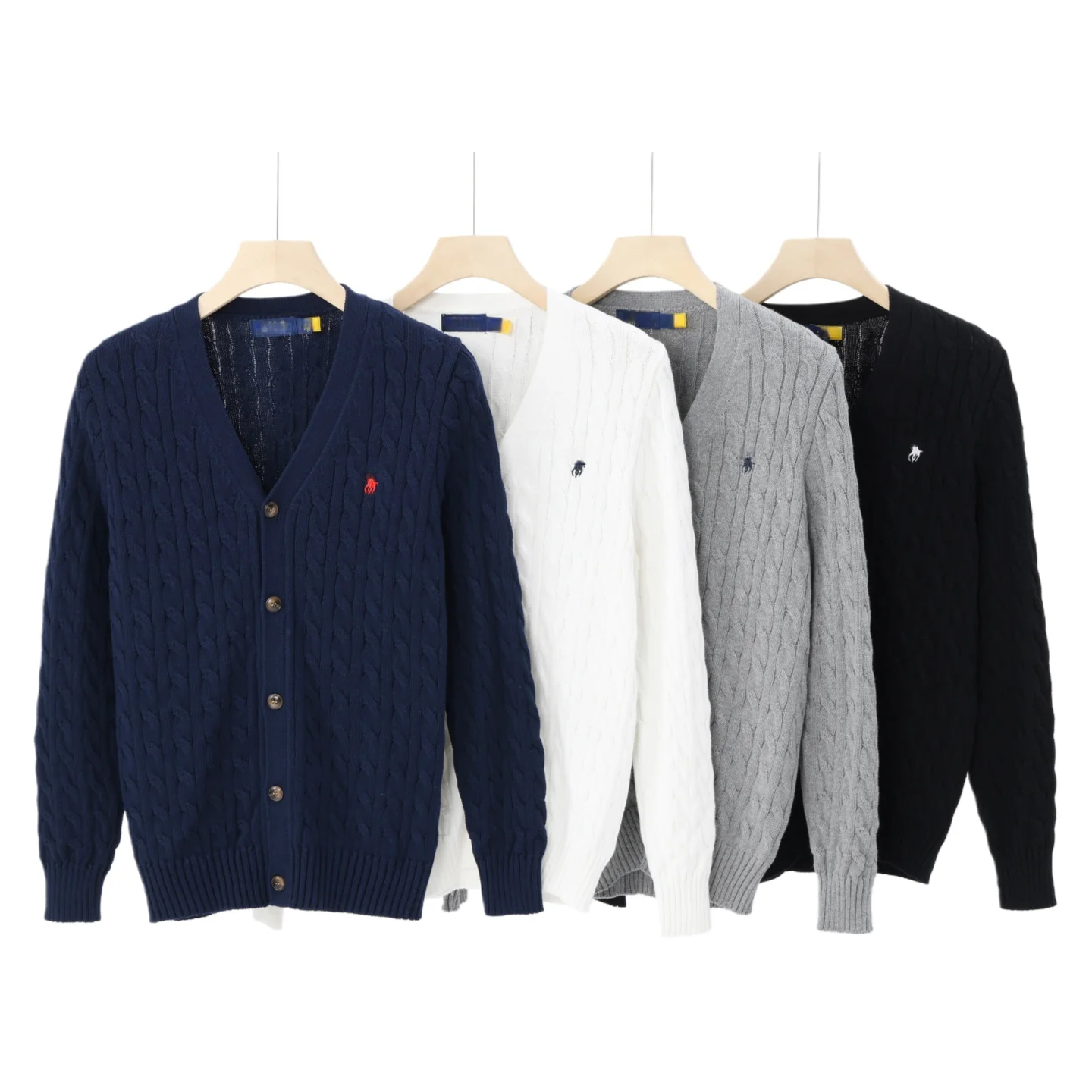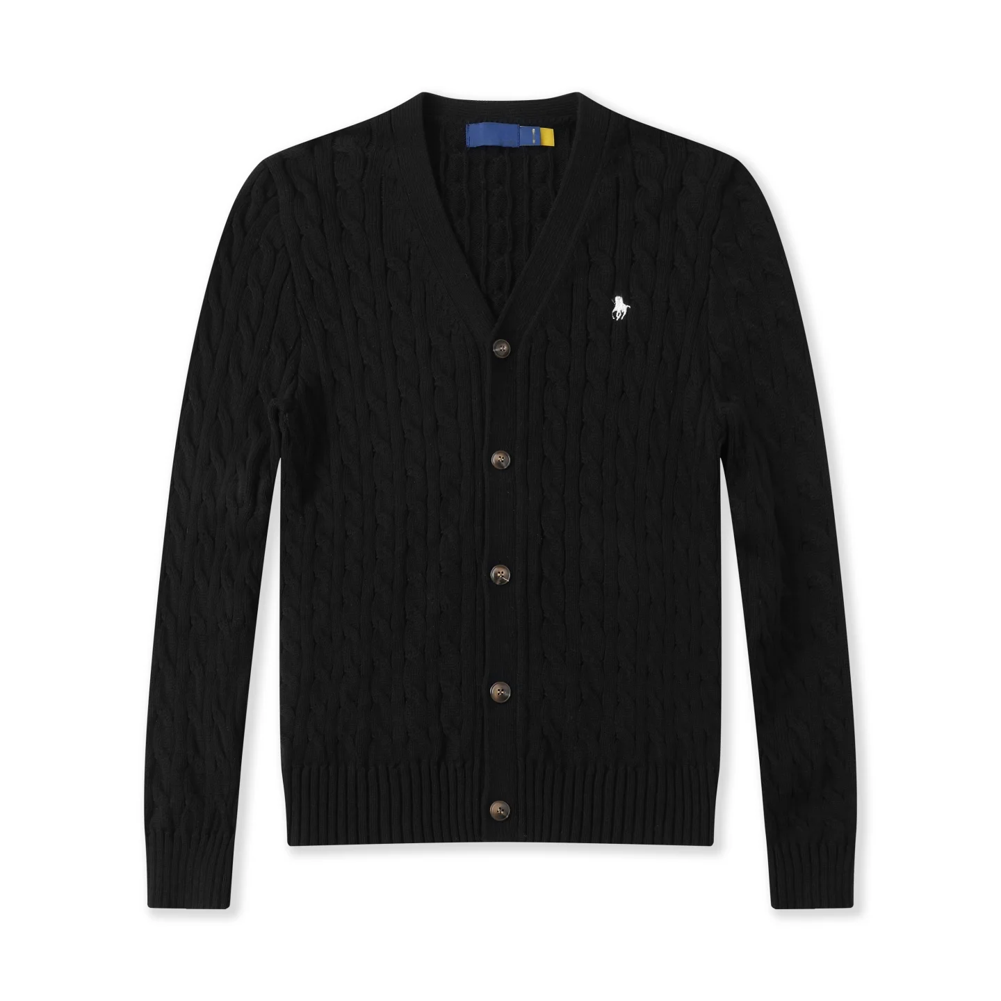 Men's Winter Warm V-neck Buttoned Wool Knitted Pullover Cardigan Long Sleeve Sweater Casual Little Horse Embroidery Logo Ralph
