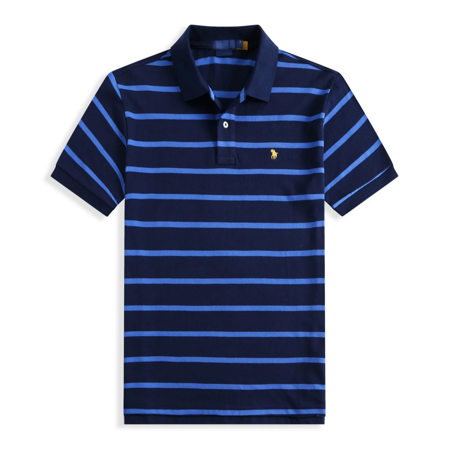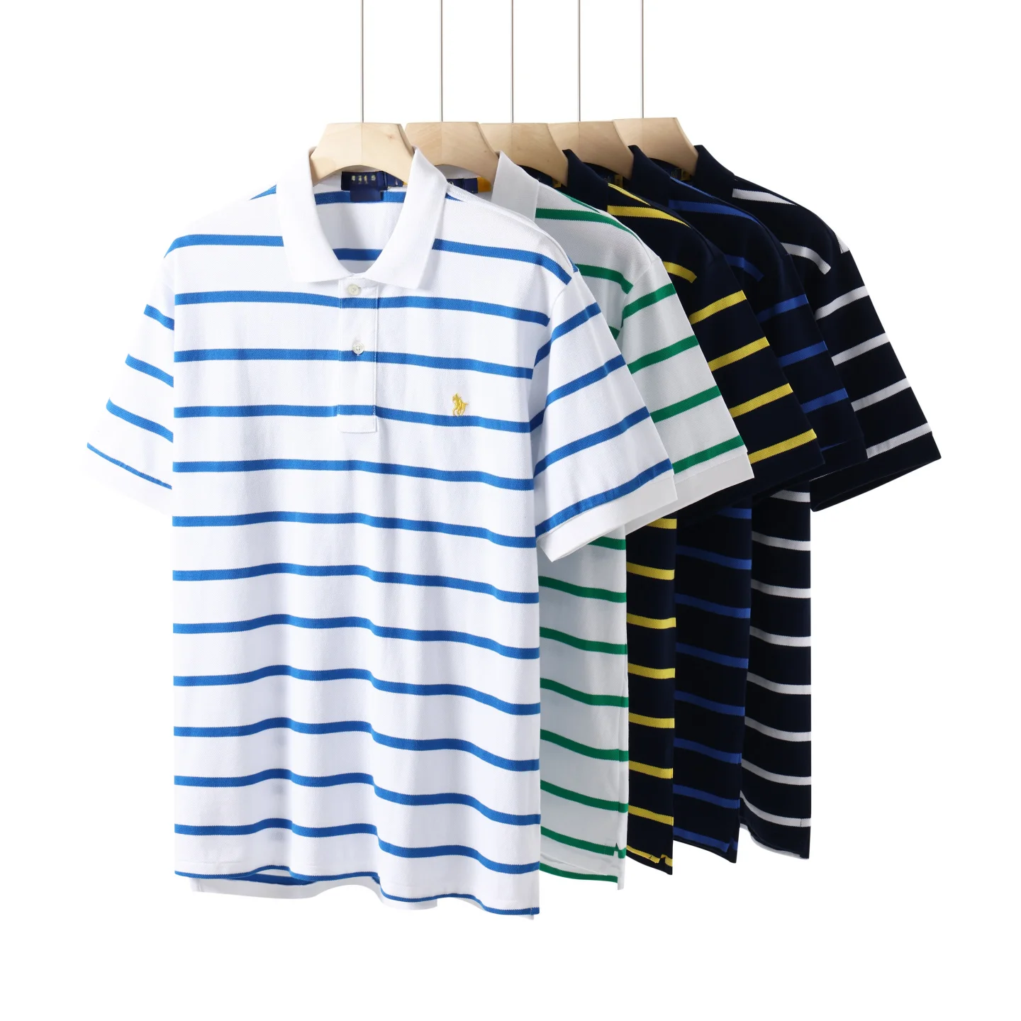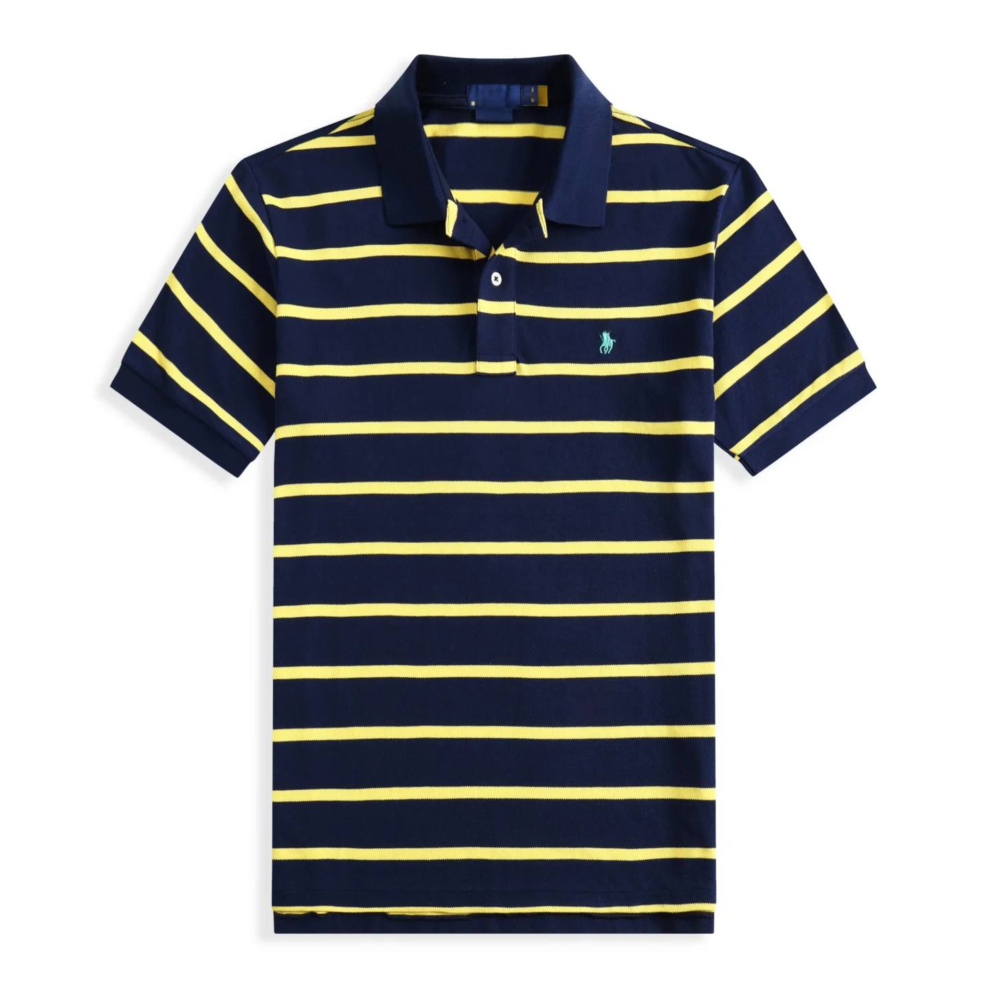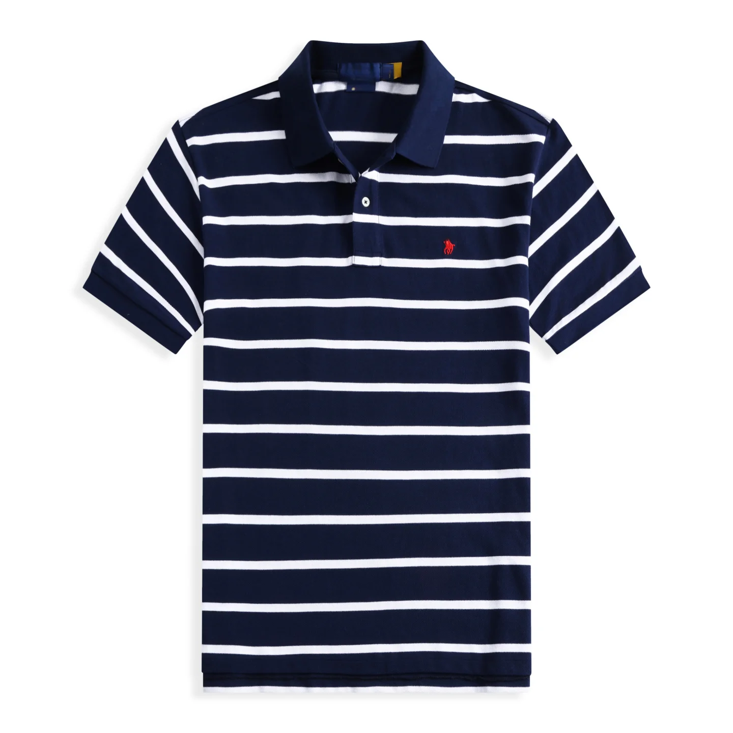 Men's Striped Polo Shirt Ralph 100% Cotton Knitted Fabric Short Sleeve Design Business Fashion Embroidered Logo Cotton T-shirt