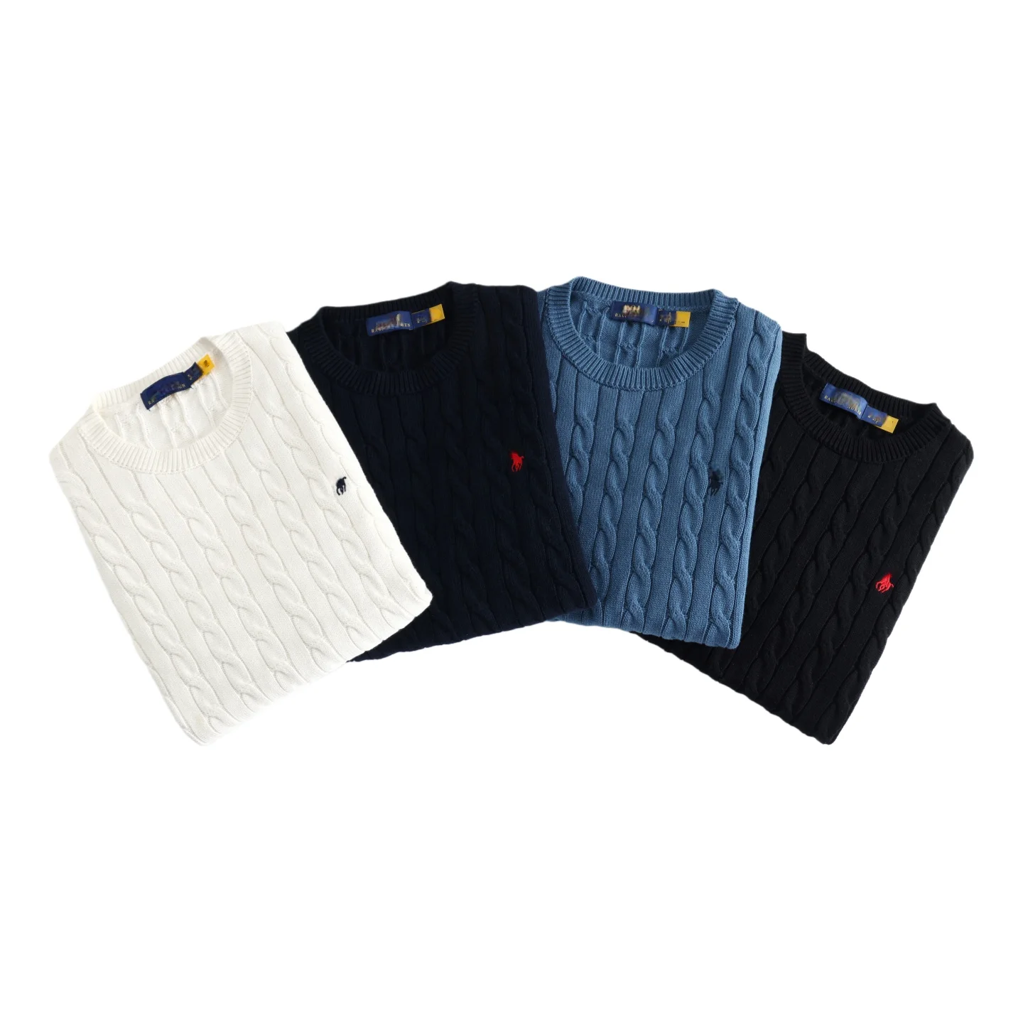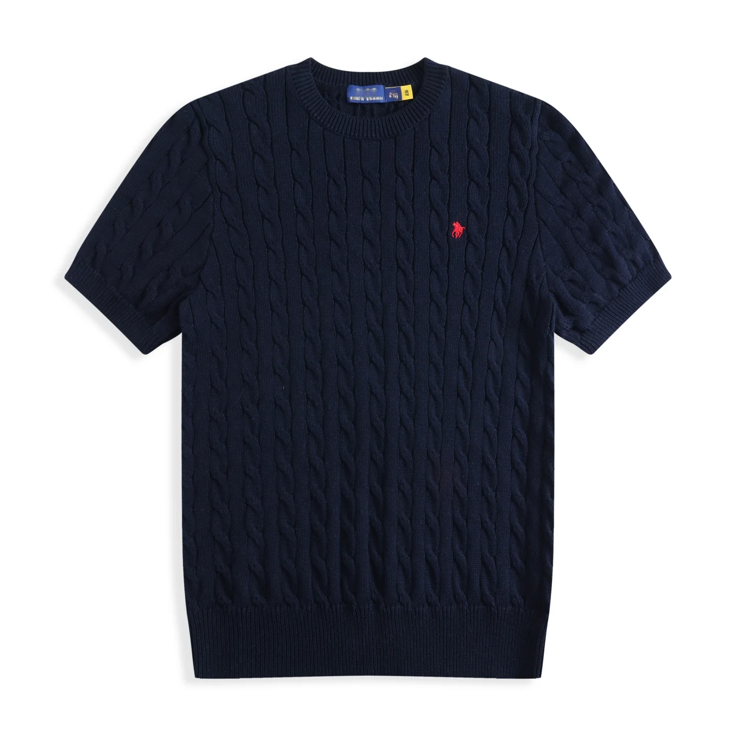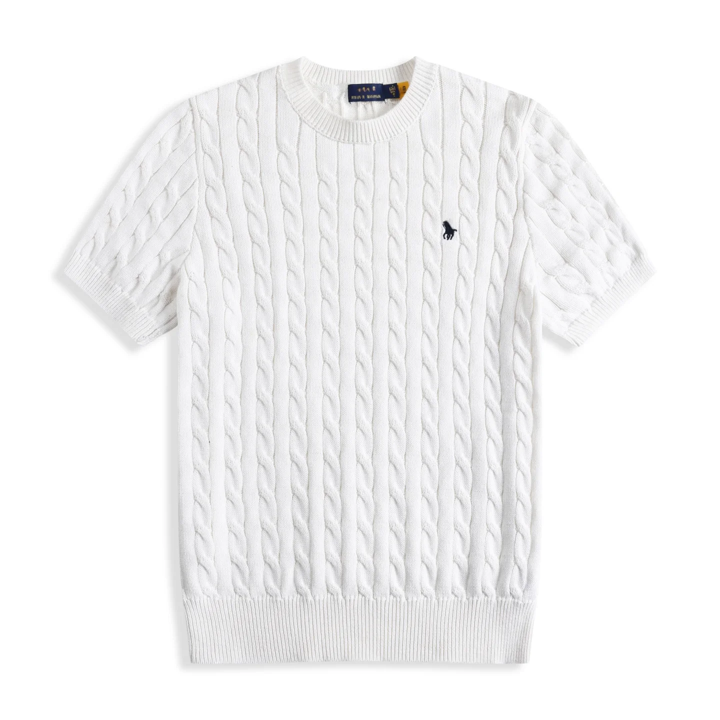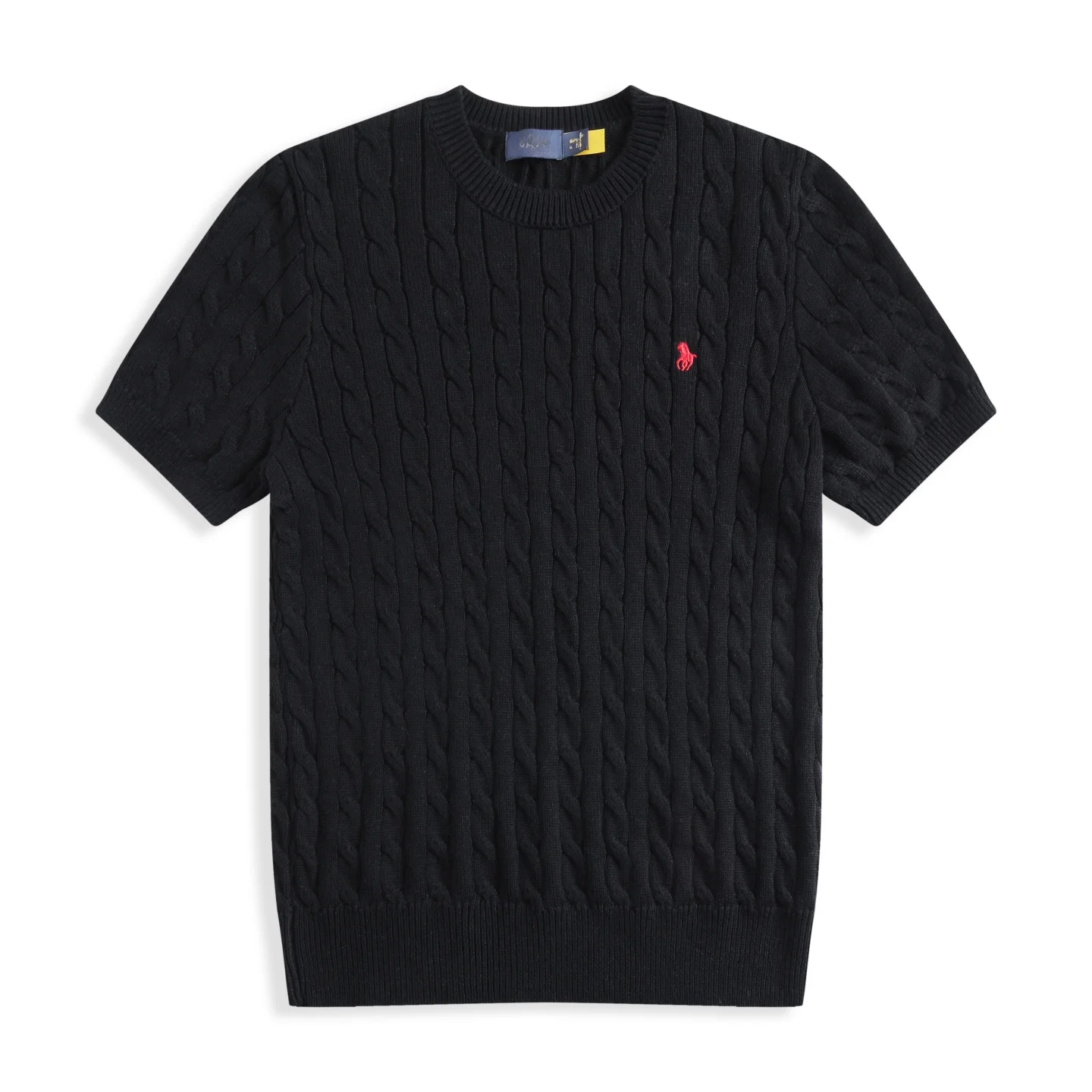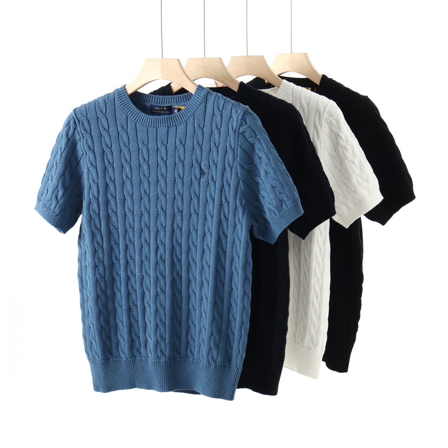 Ralph Men's Custom Logo Pony Embroidery Crew-neck Knitted Sweater Casual Short Sleeve Pullover Sweater Twist for Spring Autumn
