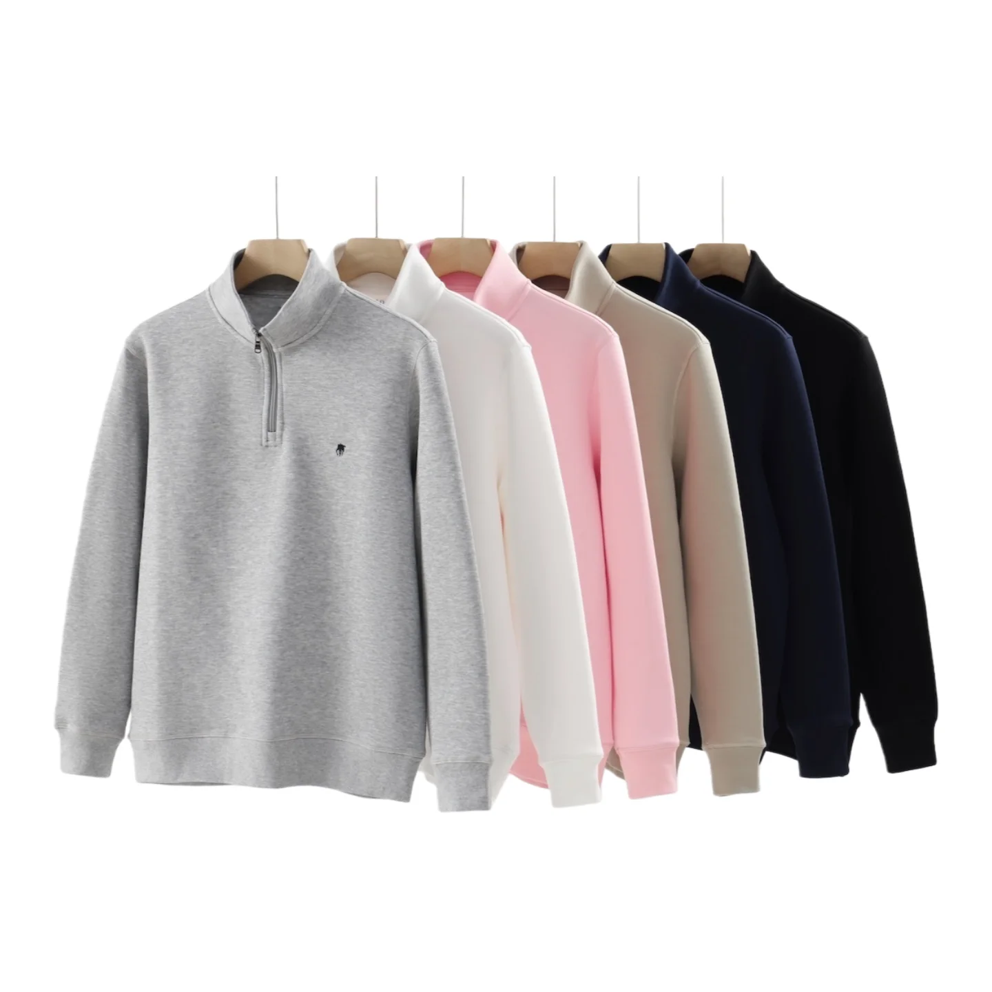 Men's Long Sleeve Ralph Autumn Knitted Pullover Casual Sweatshirt Quarter-zip 4/1 Fashion Embroidery 100% Cotton Sweatshirt