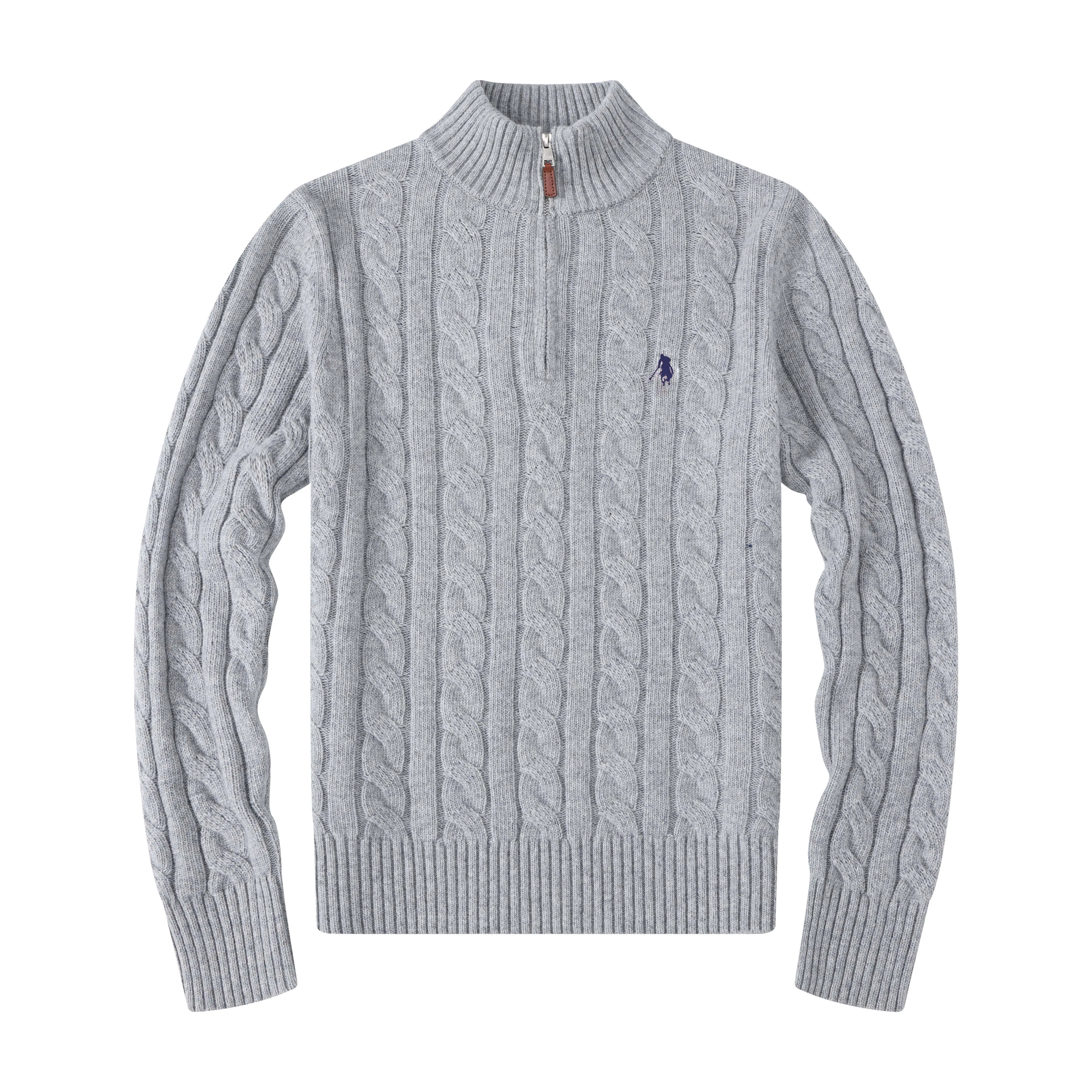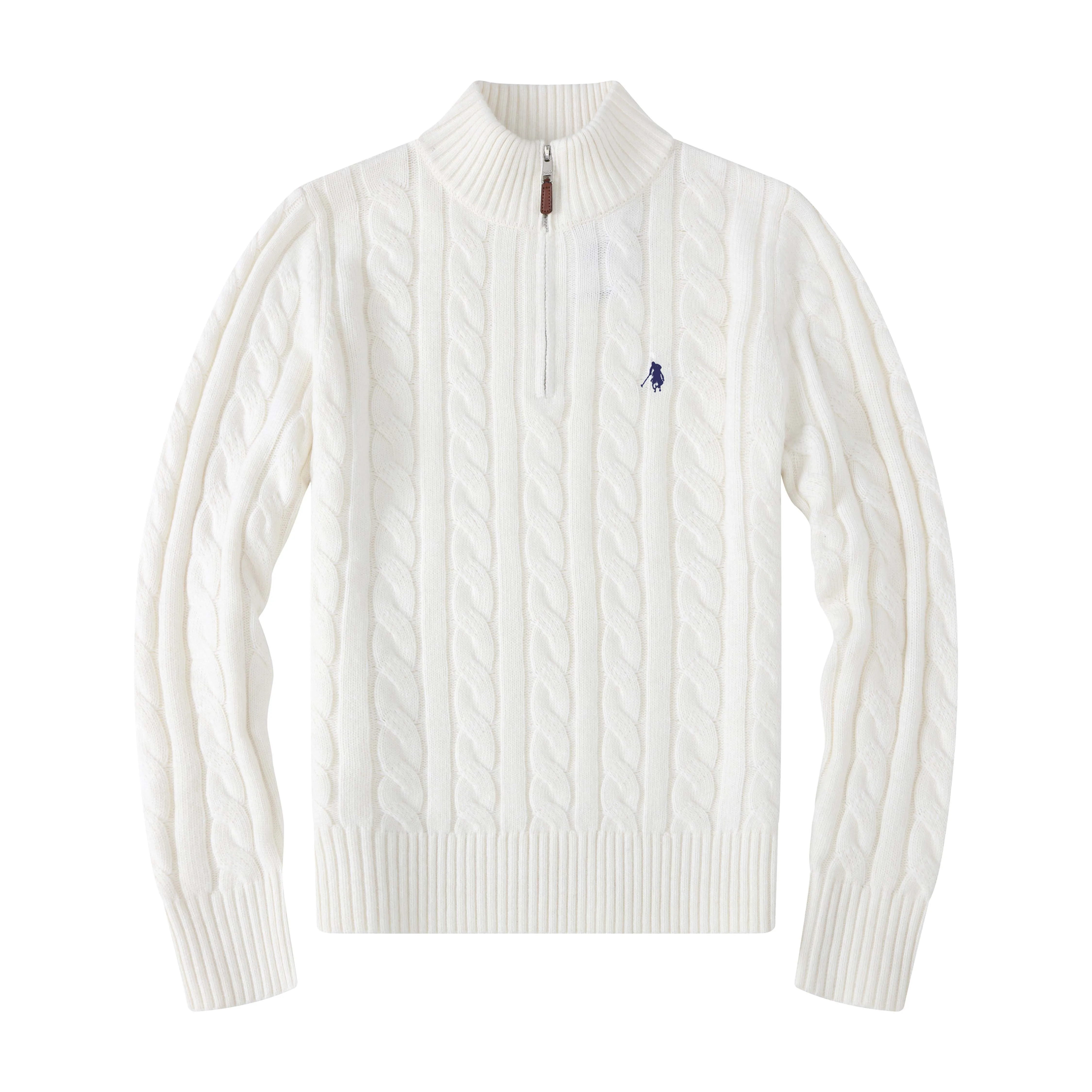 High Quality Ralph Men's Sweater Solid Color Pullover Sweater Half Zip Stand Collar Casual Knit Sweater Long Sleeve Warm Sweater