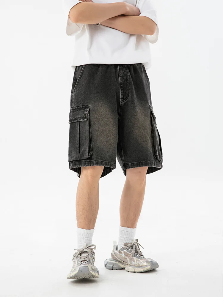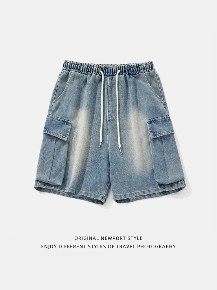 OEM & ODM New Arrival Men's Distressed Print Denim Shorts Summer Casual Straight Pants Mid Waist Side