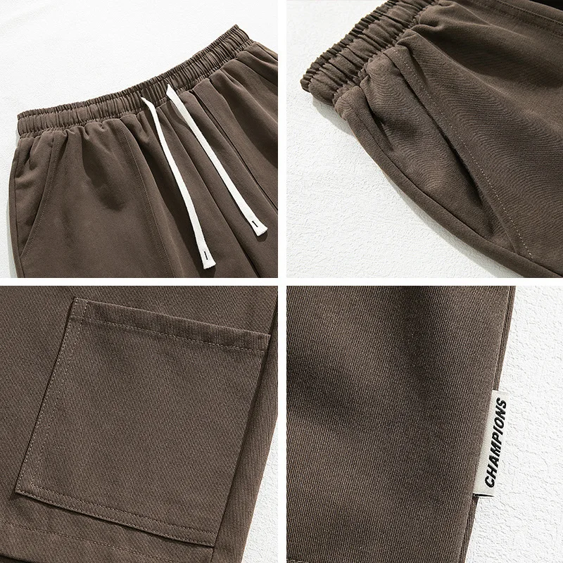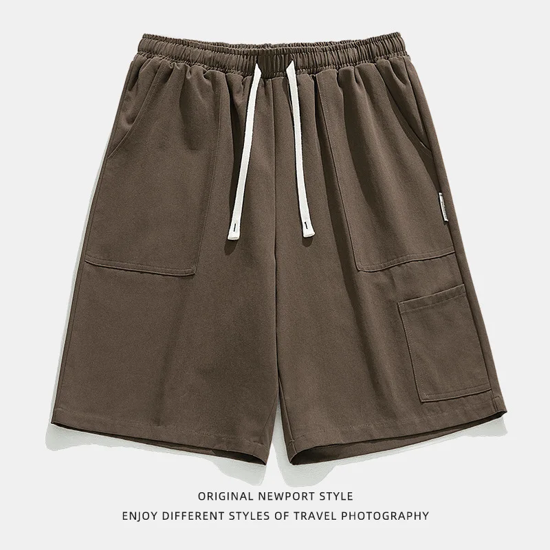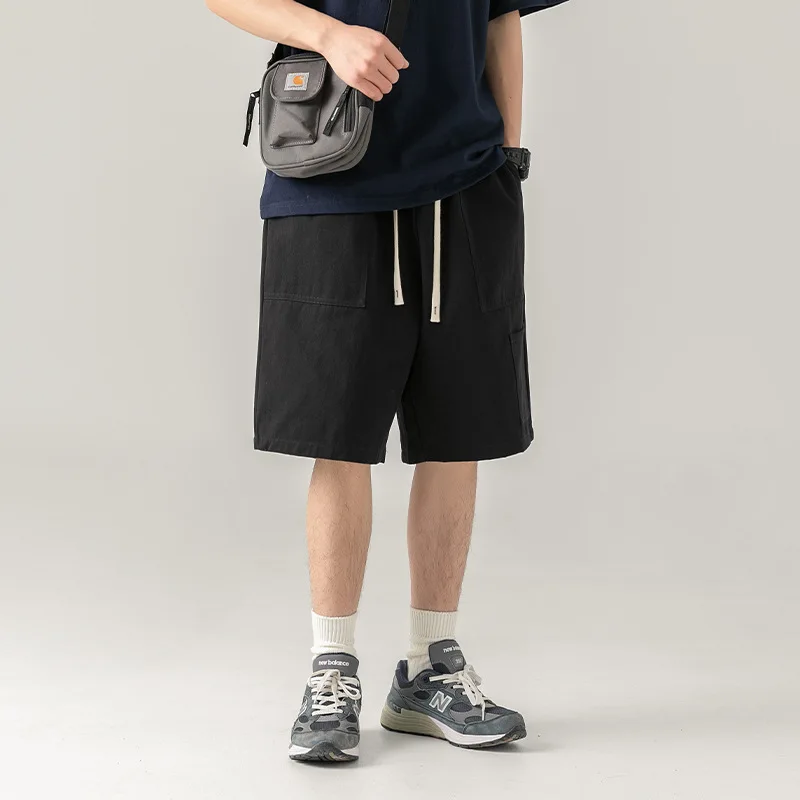 OEM & ODM Men's Summer Casual Sports Shorts Japanese Style Solid Mid Knitted Large Pocket