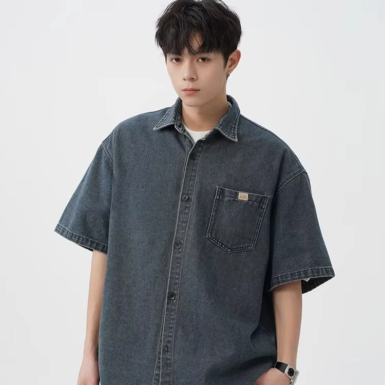 OEM & ODM 2026 Spring/Summer Collection Retro Loose Old Washed Denim Men's Short-Sleeved Knitted Coat