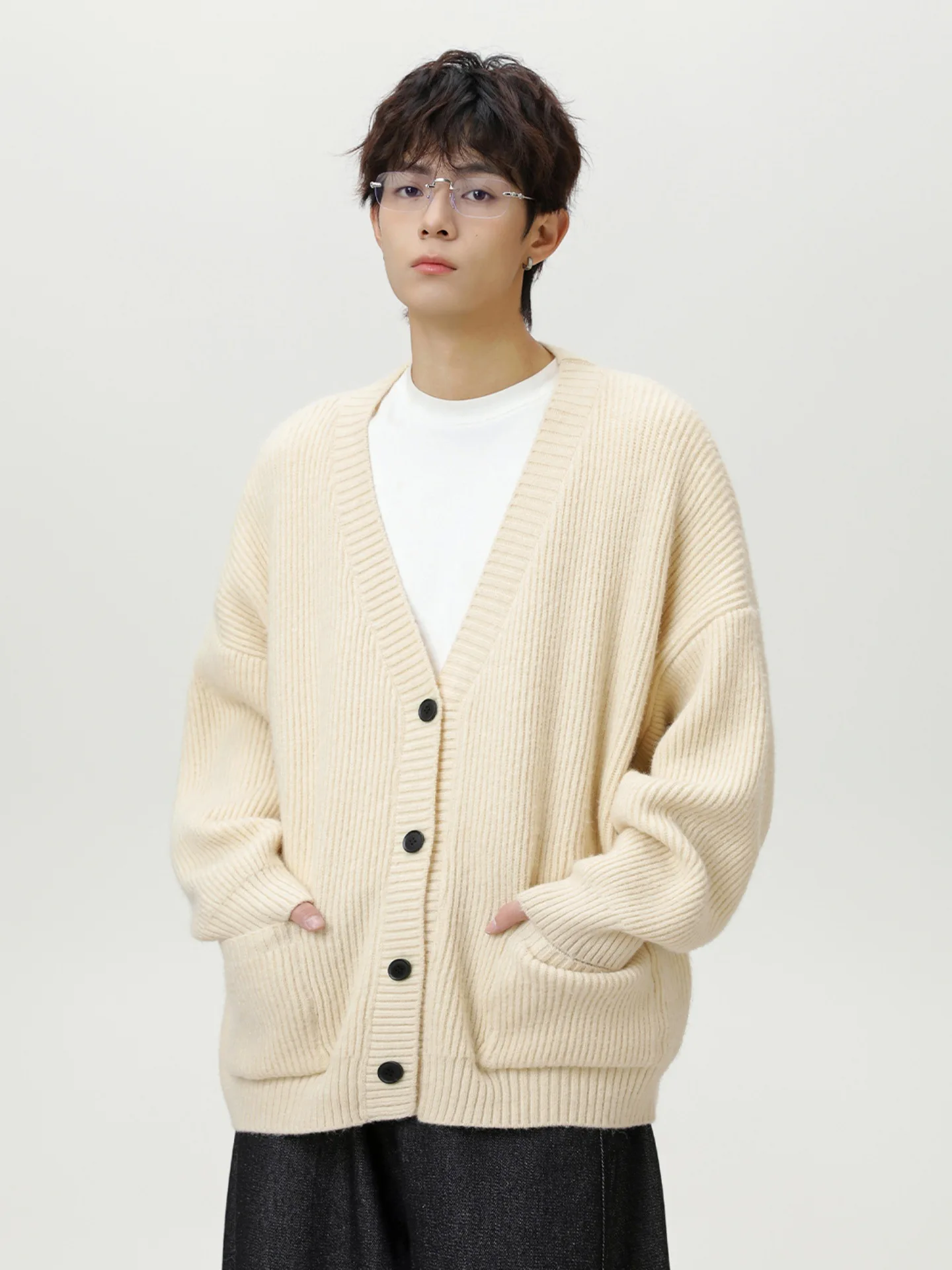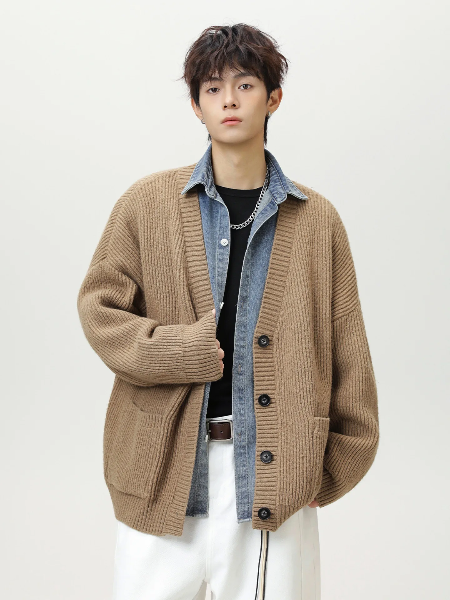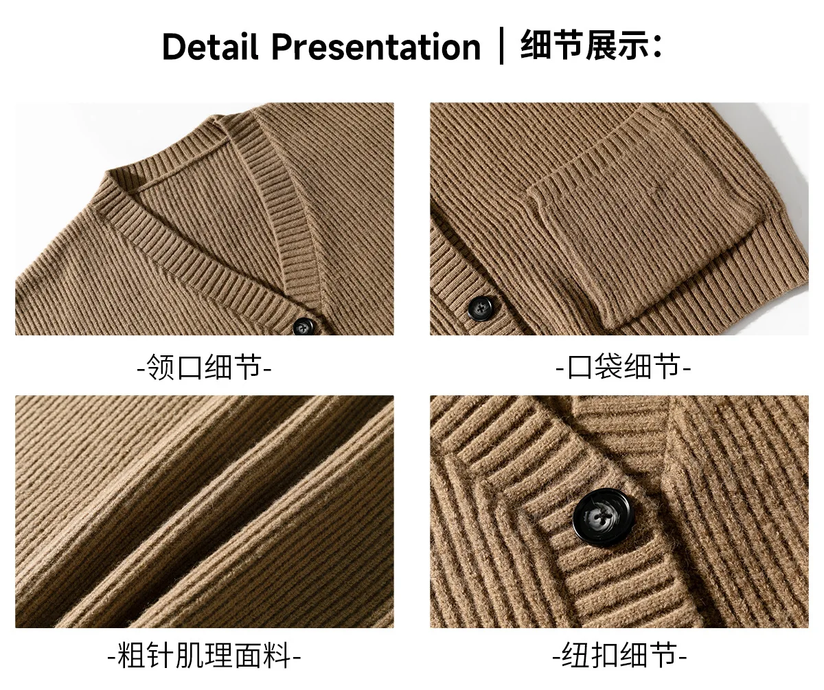 Autumn Winter Men's Casual Cardigan Sweater Japanese Retro Style Solid Color V-Neck Jacket Thickened Lazy Thick Needle Front