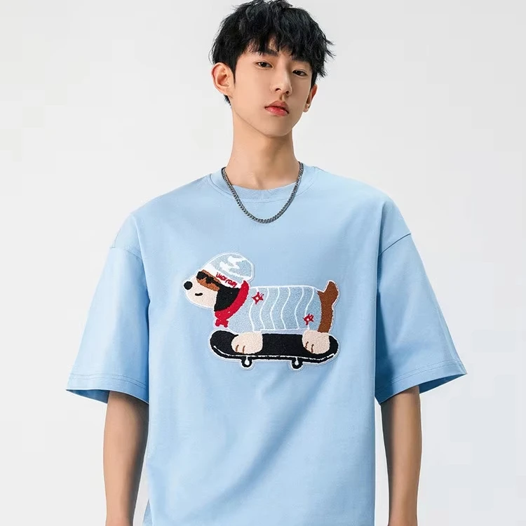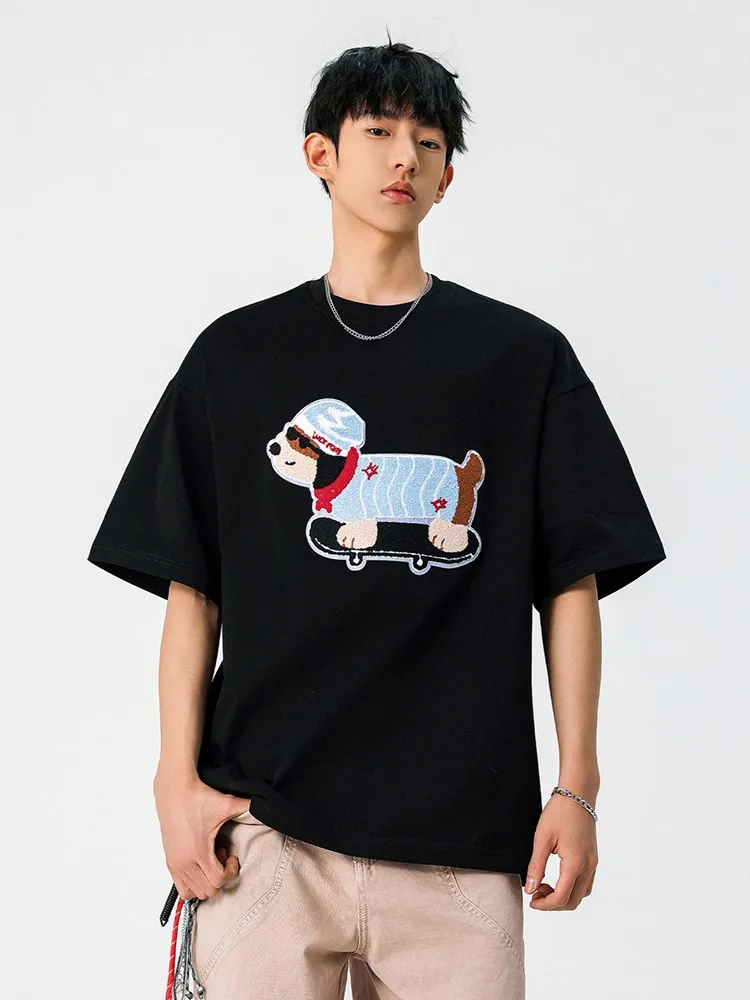 OEM & ODM Fun Summer Japanese Trendy Casual Print Embroidered Puppy T-Shirt for Men Half-sleeved