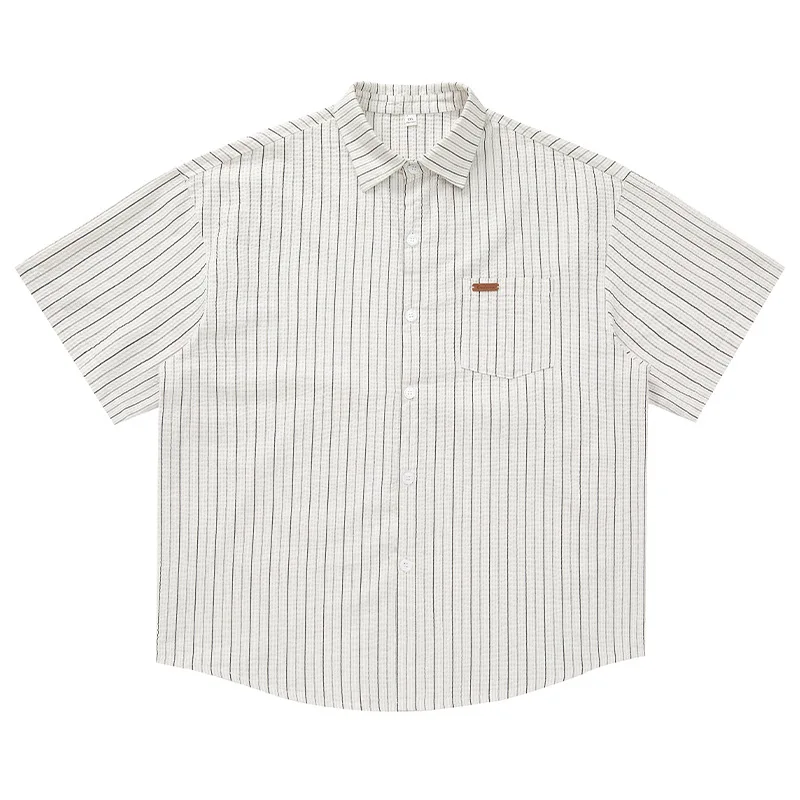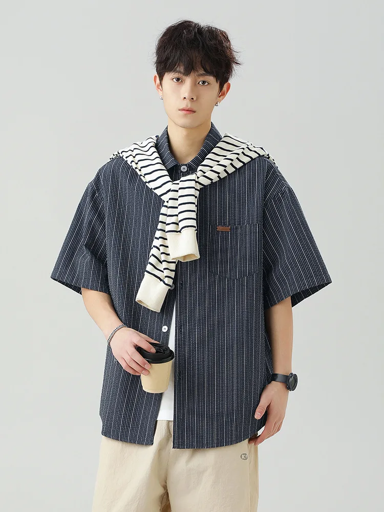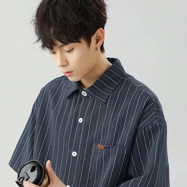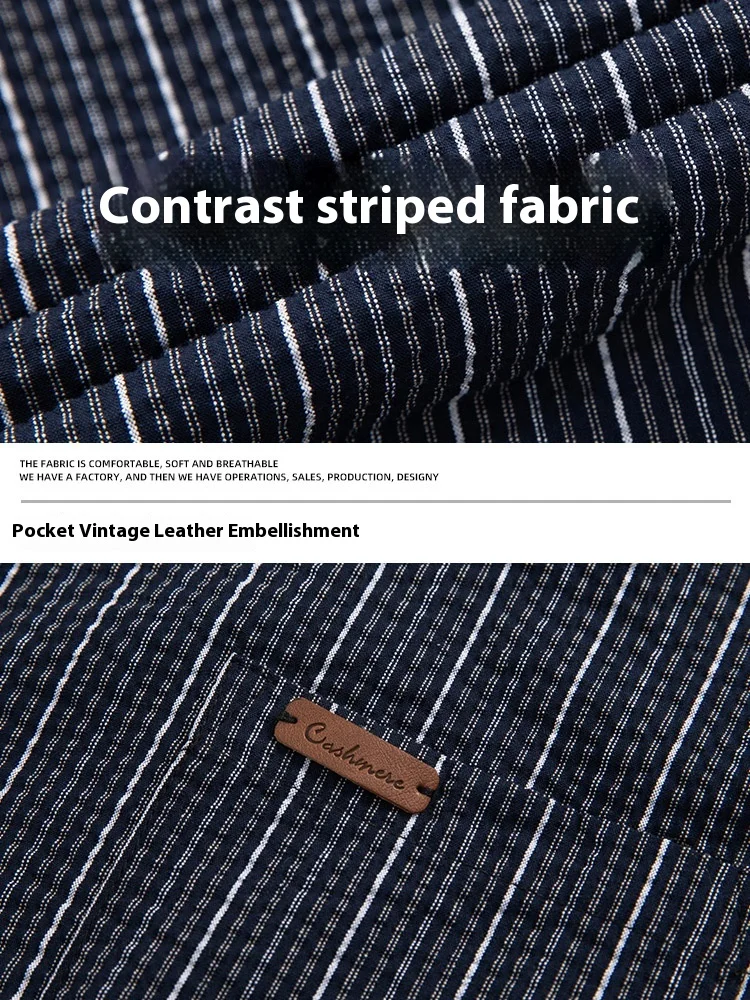 OEM & ODM Micro Wrinkle Contrast Striped 100% Cotton Japanese Style Short Sleeve Lapel Jacket
