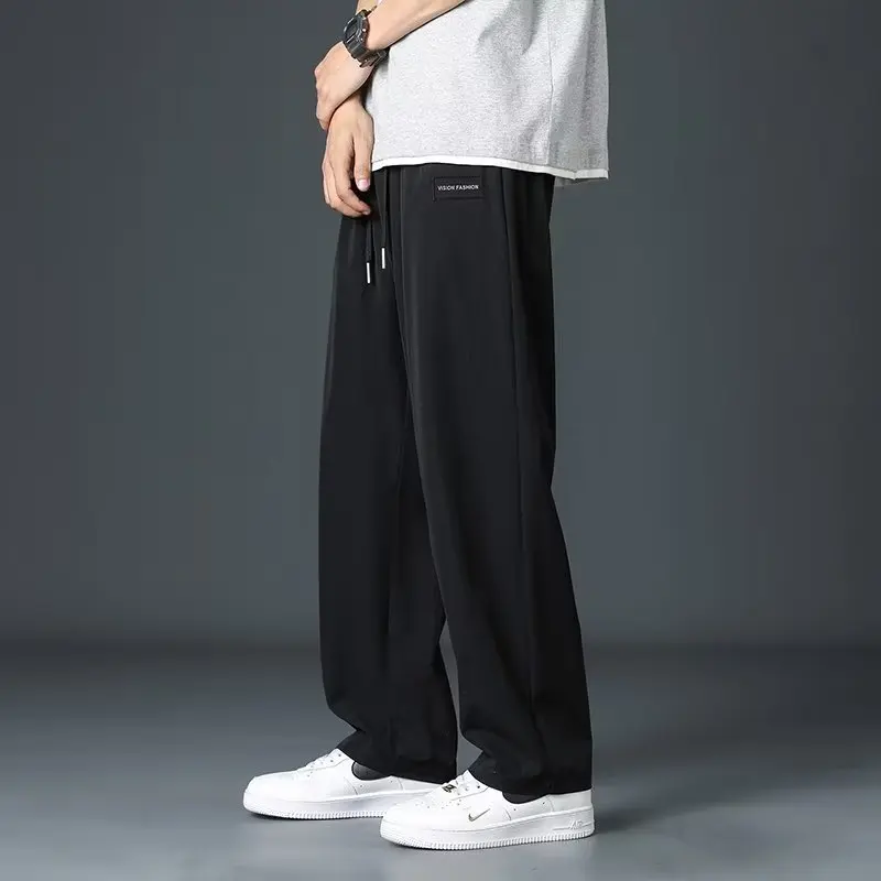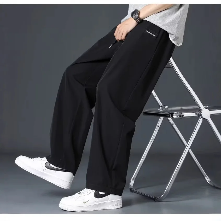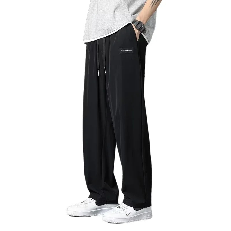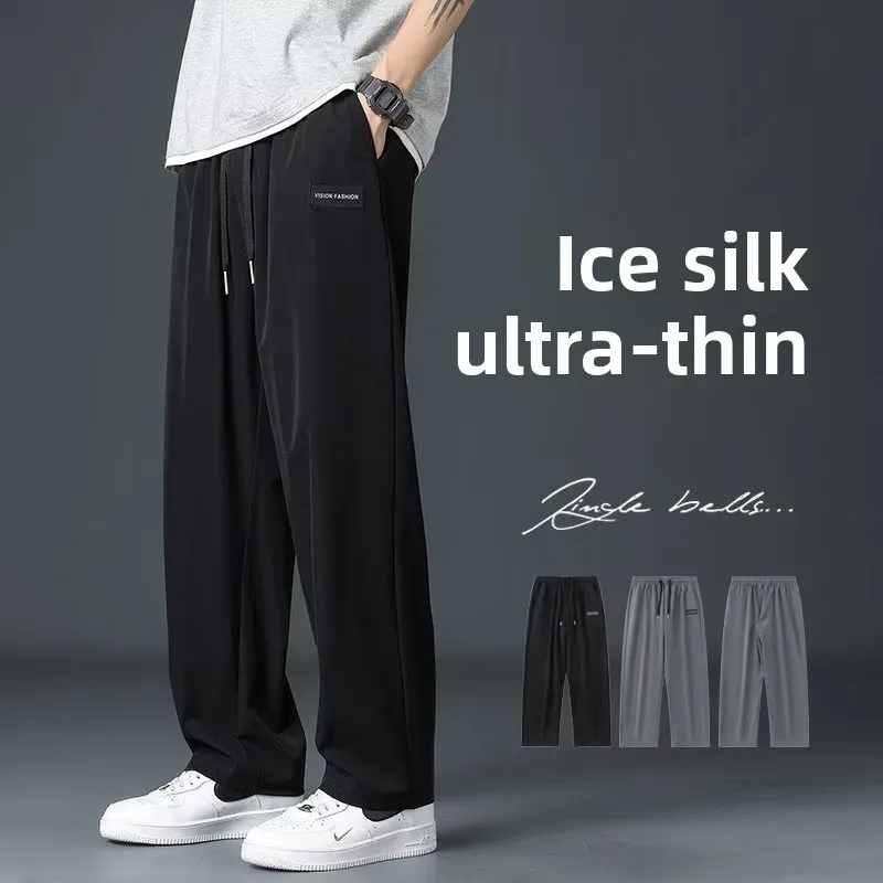 OEM & ODM Quick-Dry XL Men's Pants Trendy Summer Ice Silk Stylish Mid Waist Wide-Leg Casual Workwear Customizable