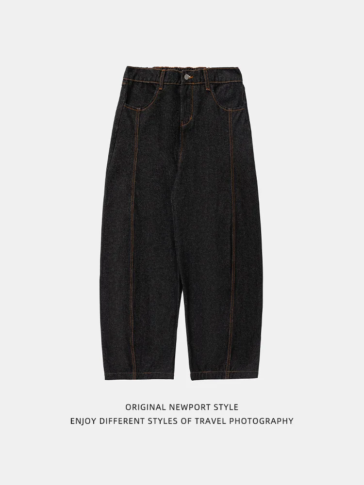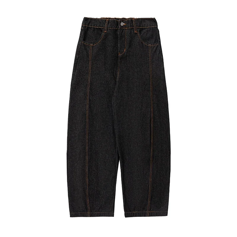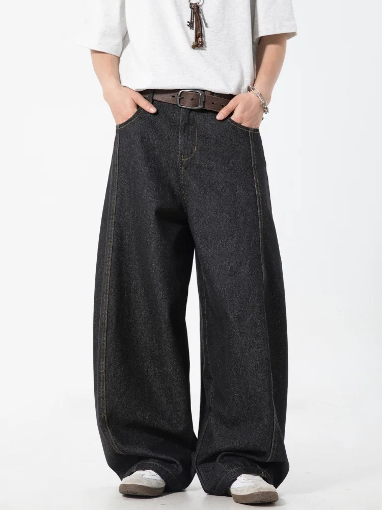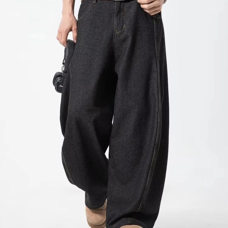 Men's Retro Machete Brand Wide Leg Casual Customized R&D Wholesale Sample Bright Line Split Waxed Denim Semi-Elastic Long Pants