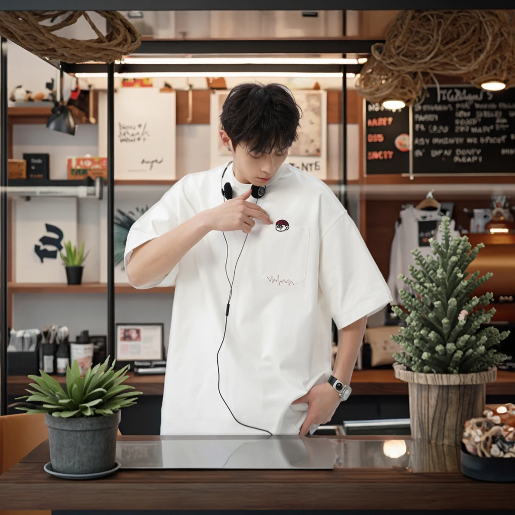 Japanese Vintage 100% Cotton Men's Short-Sleeved T-Shirt OEM & ODM Production with Digital Printing for Spring