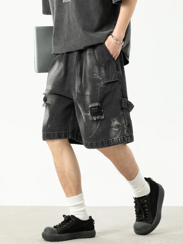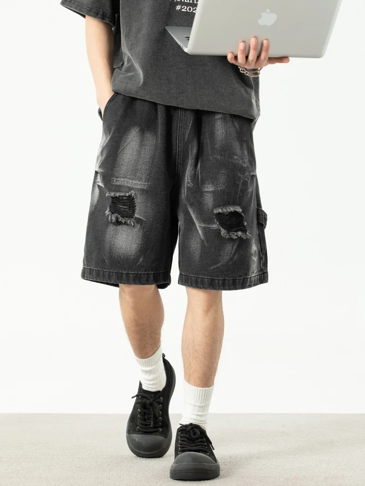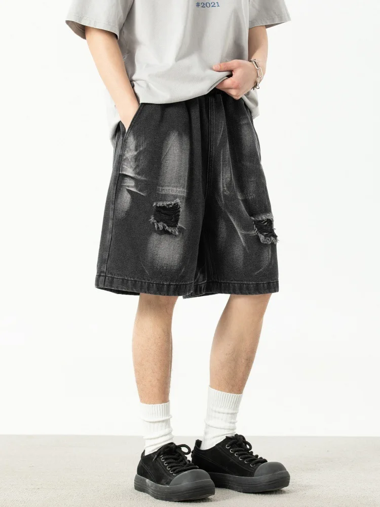 Men's Mid Vintage Summer Straight Jeans Casual Retro Loose Pleated Heavy Industry Washed Denim New