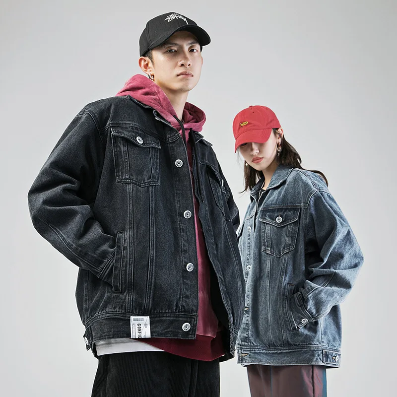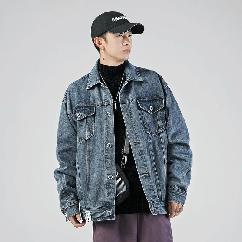 Japanese Men's Reversible Retro Washed Denim Jacket Loose Laps Casual Puffer CUSTOMIZED R&D Wholesale Sample