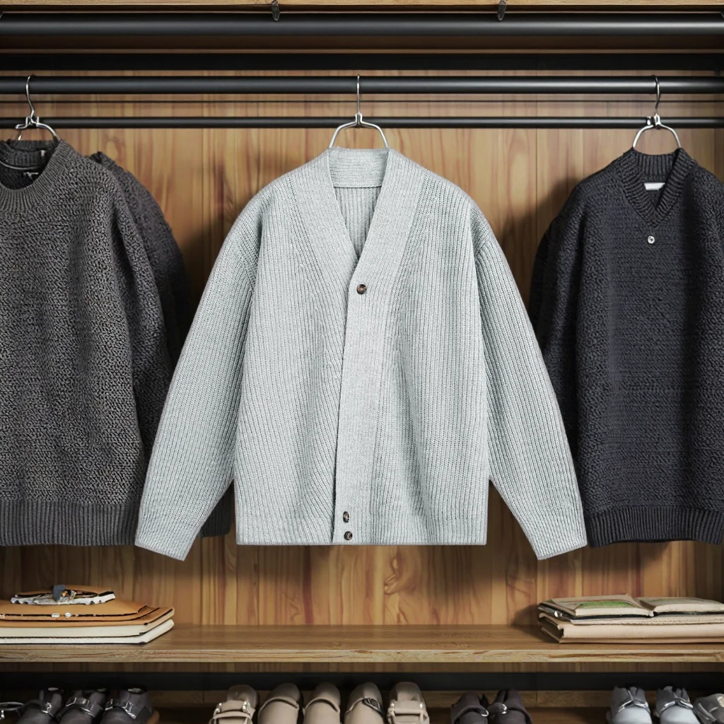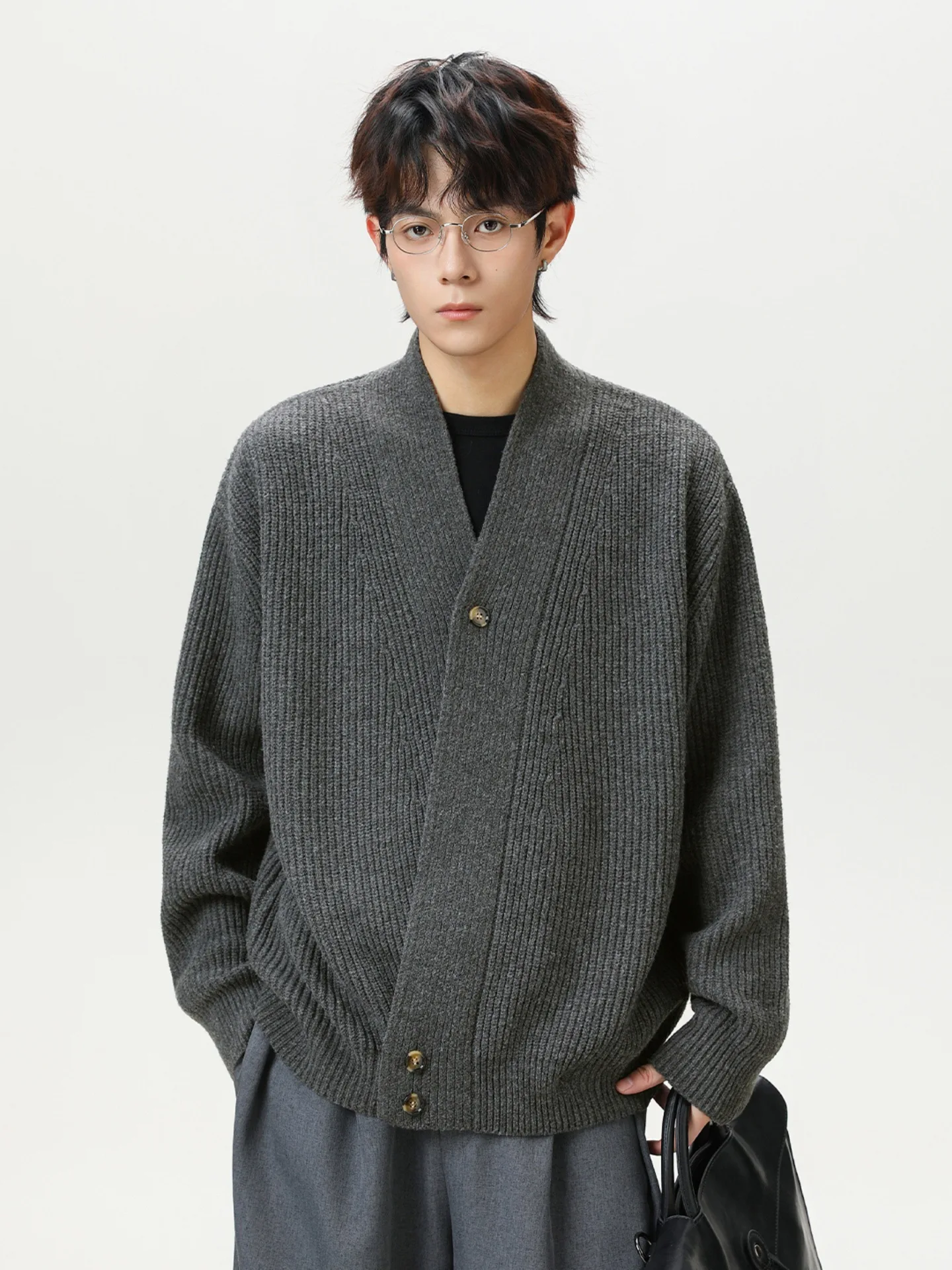 High-End Japanese Retro Qian Feng Cardigan Sweater Men Autumn Winter Taoist Robe Front Logo Knitted Anti-pilling 100% Polyester