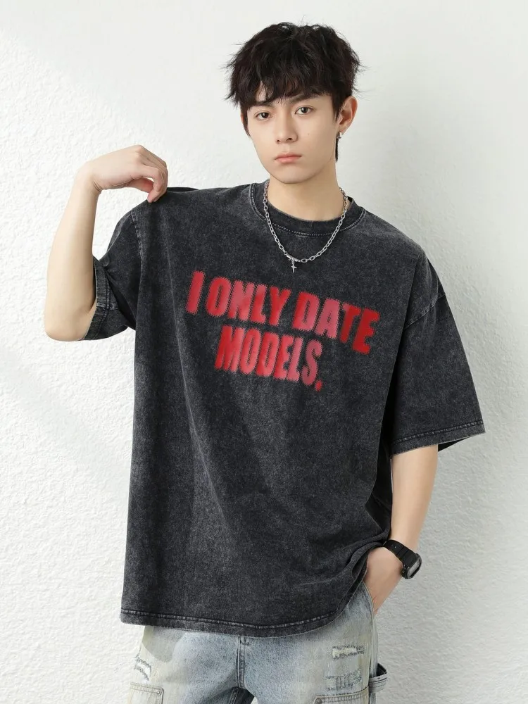 OEM & ODM American Retro 100% Cotton Men's Short-Sleeved T-Shirt New Washed Cotton Color