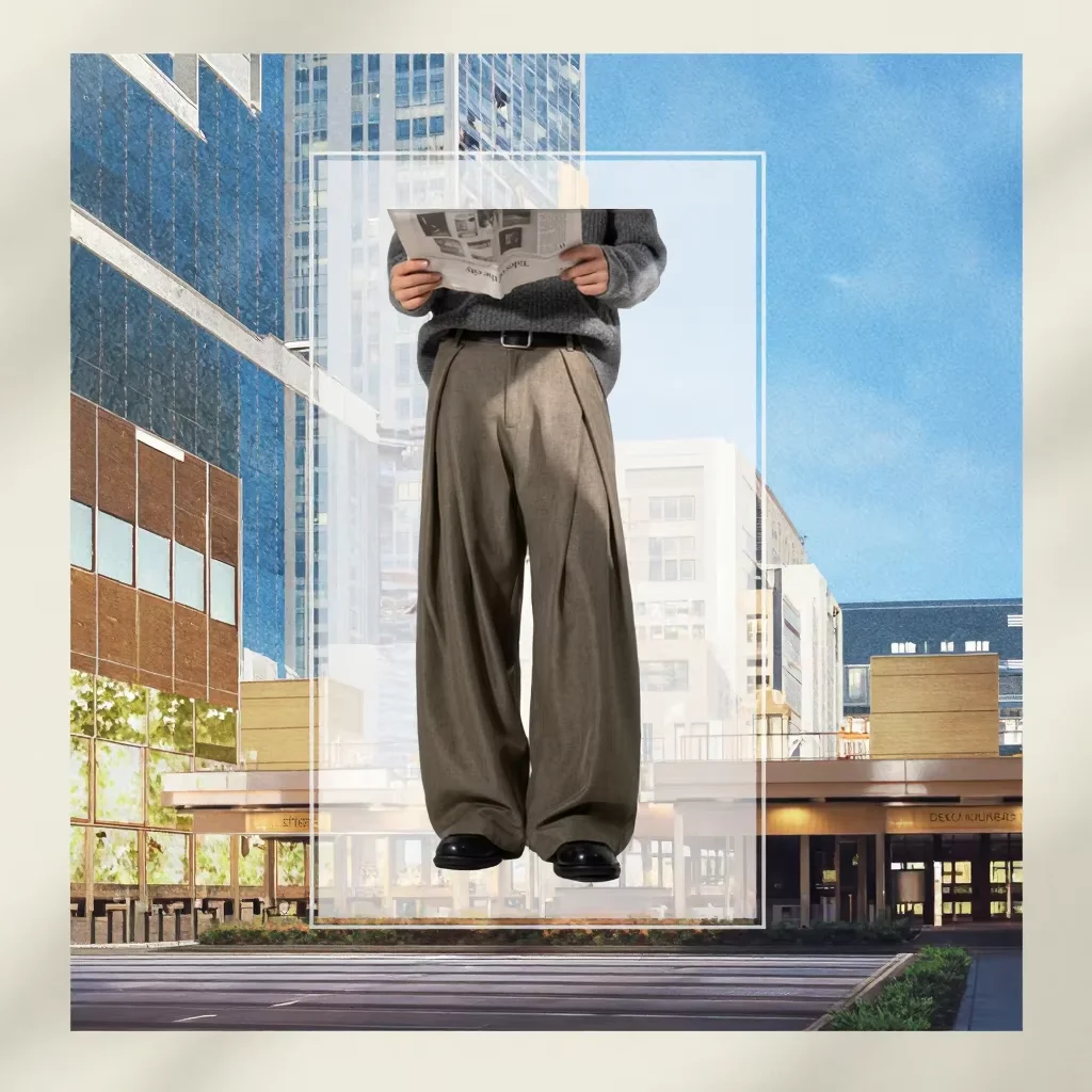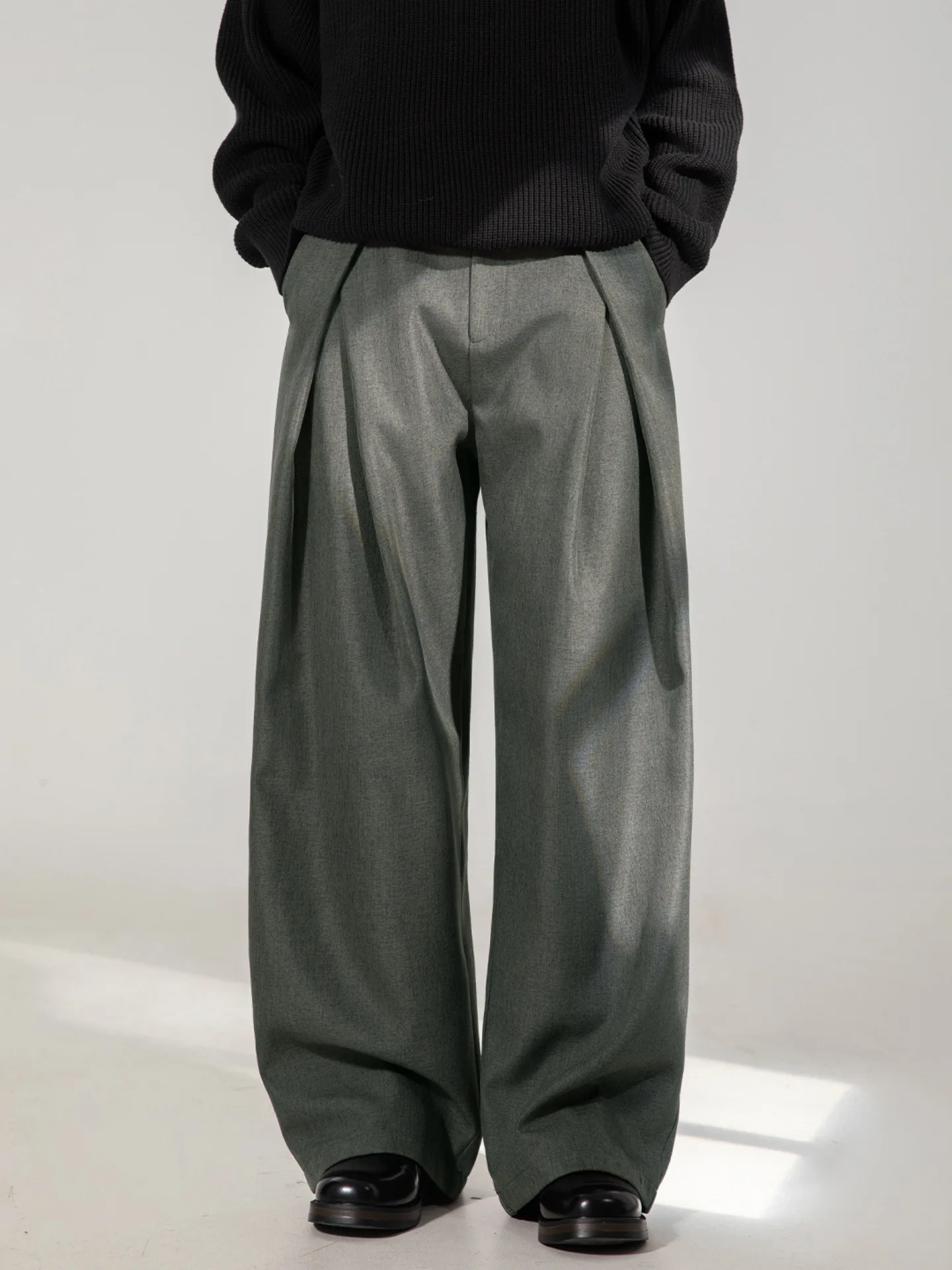 Autumn Men's Retro Long Pants Cross Pleated Design Draped Casual Style Mid Waist Flat Front Fashionable Han Road 100% Polyester