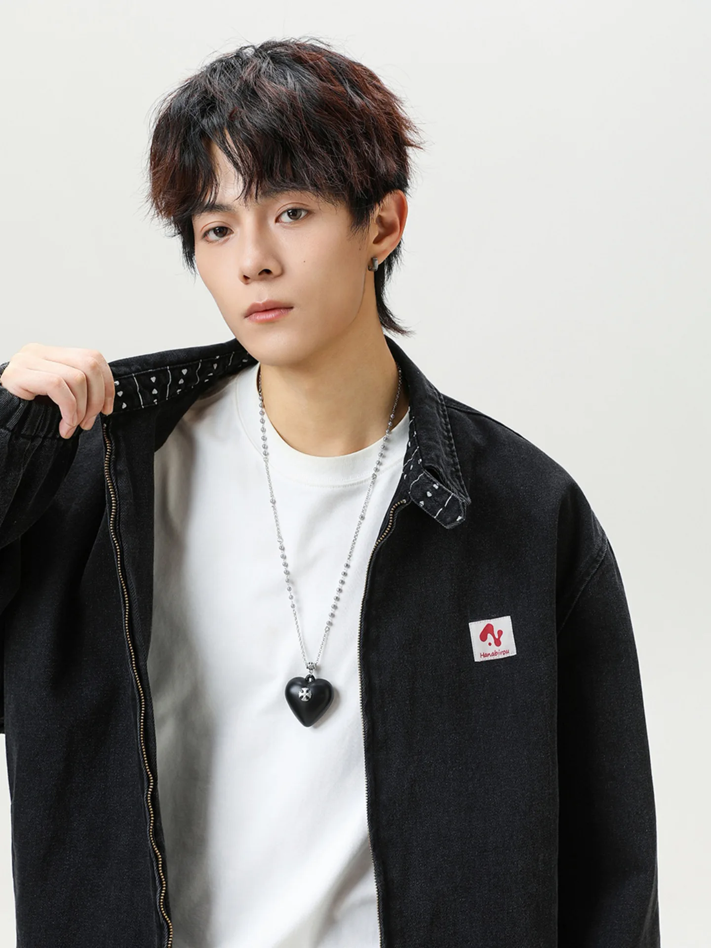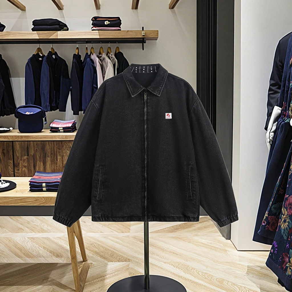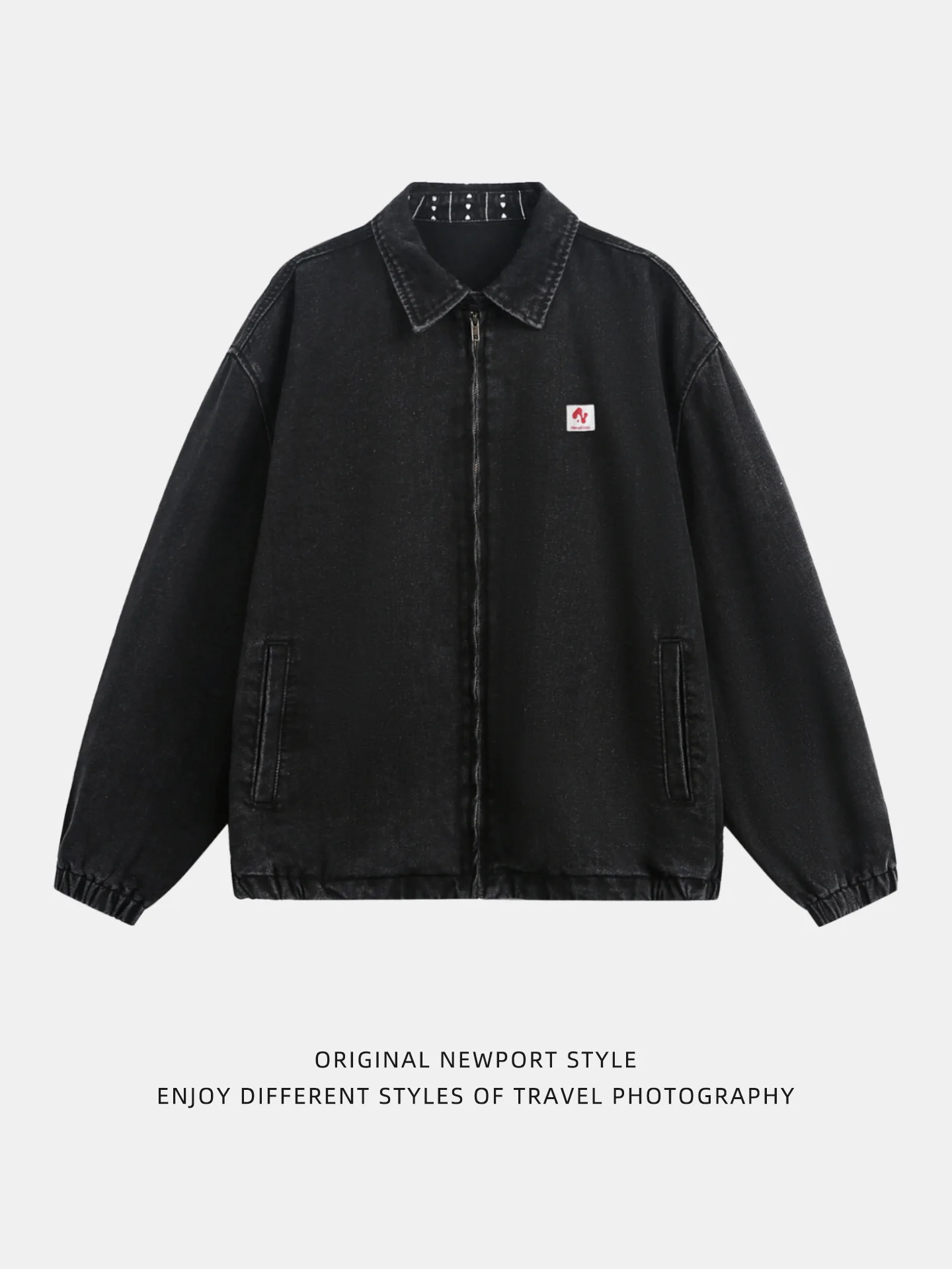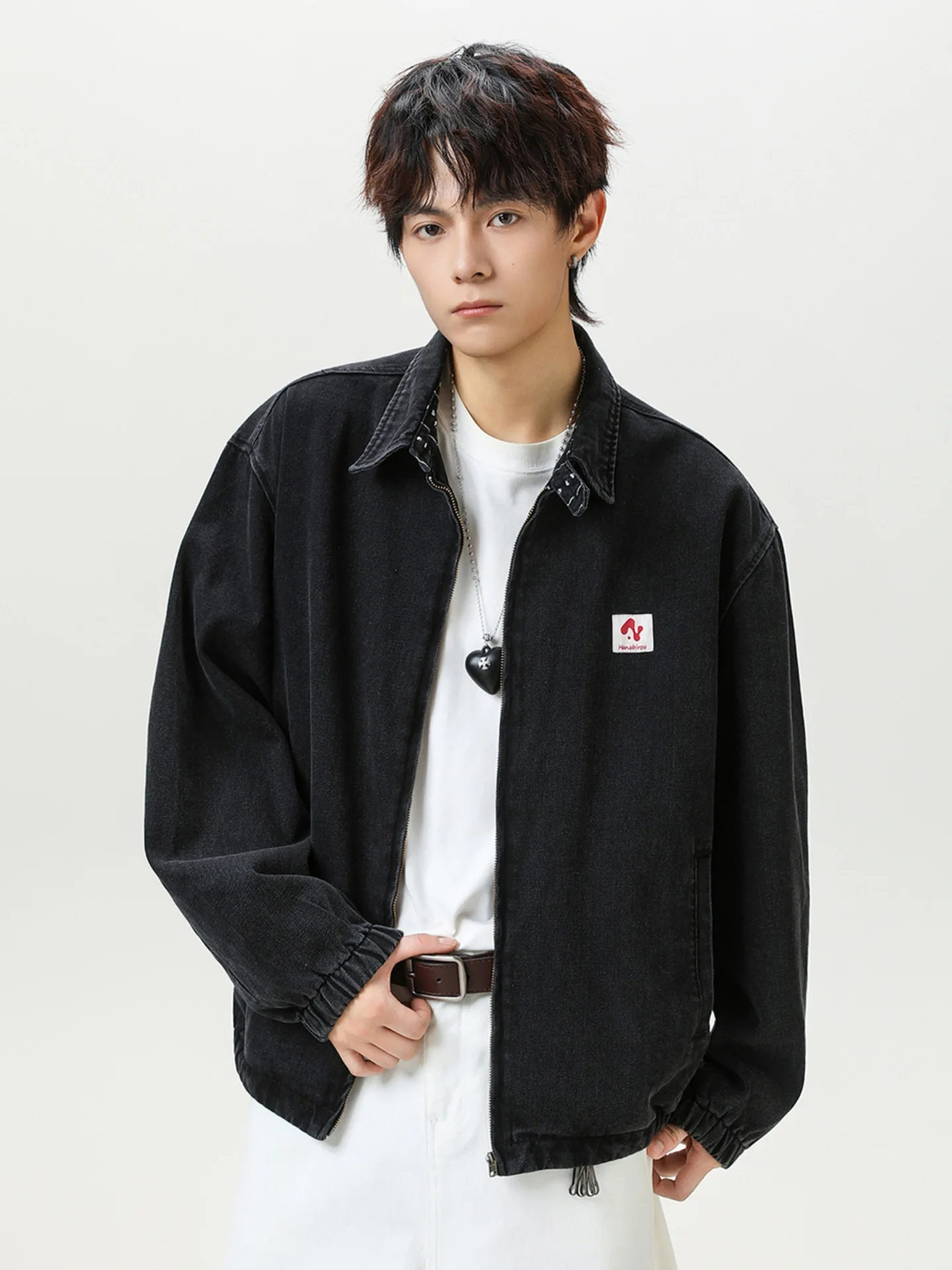 Autumn Men's Vintage Washed Denim Jacket American Style Short Wide Profile Detroit Tooling Design Zipper Closure Front Logo-for