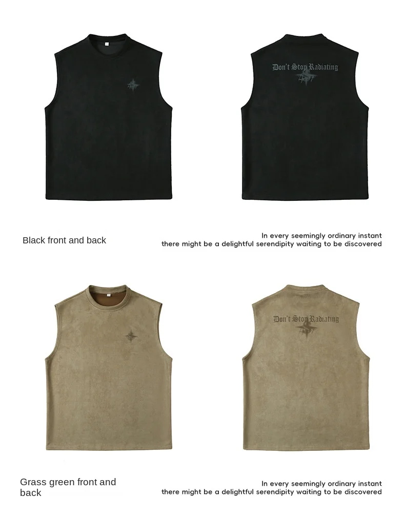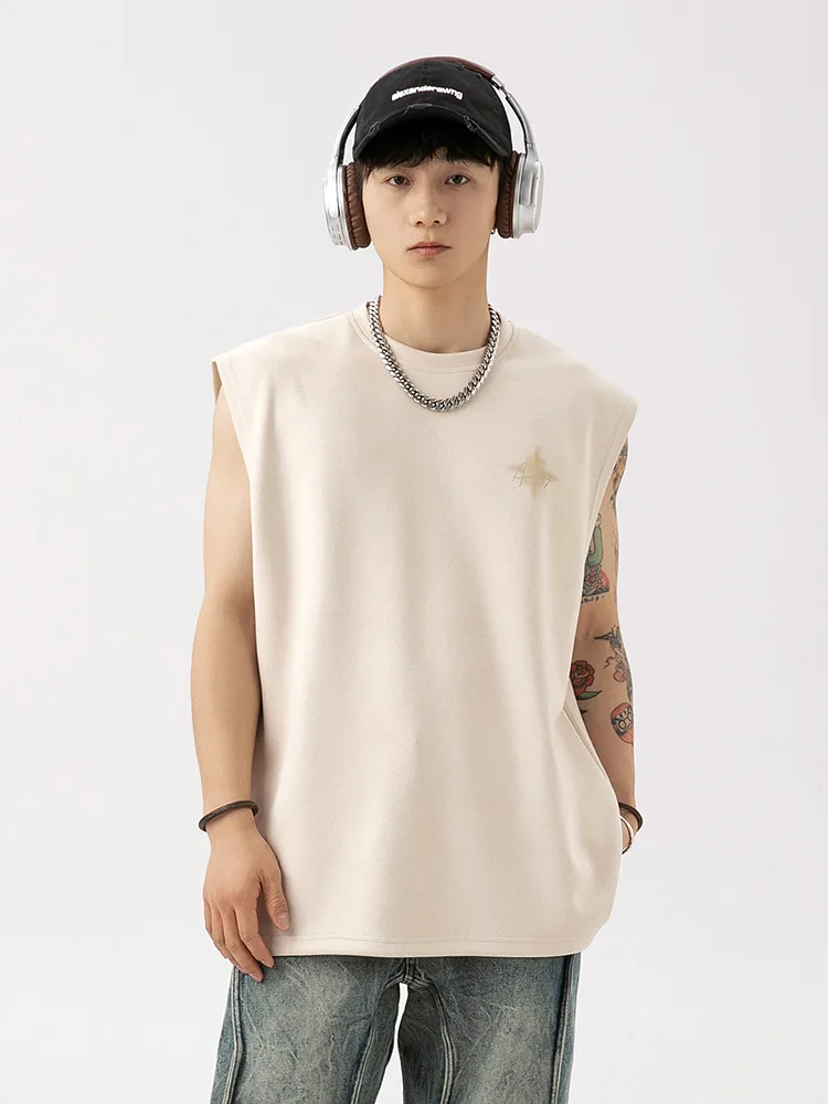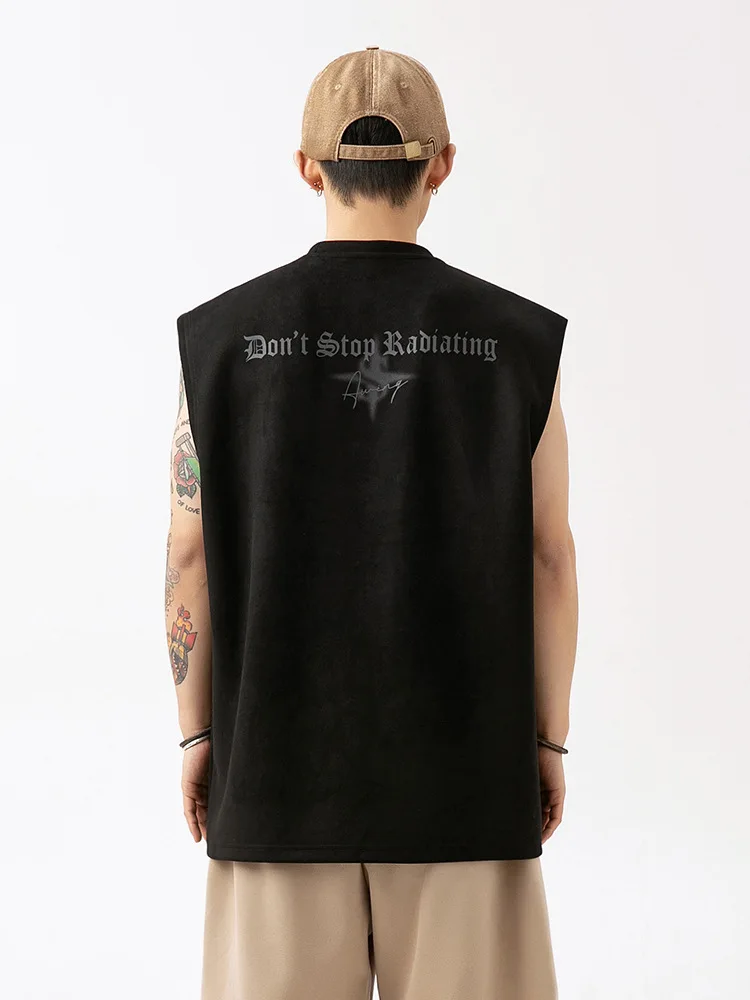 2026 Summer Men's Active Tops New Casual Waistcoat Q Breathable Suede Thin Sports Vest Sleeveless T-shirt American Letter