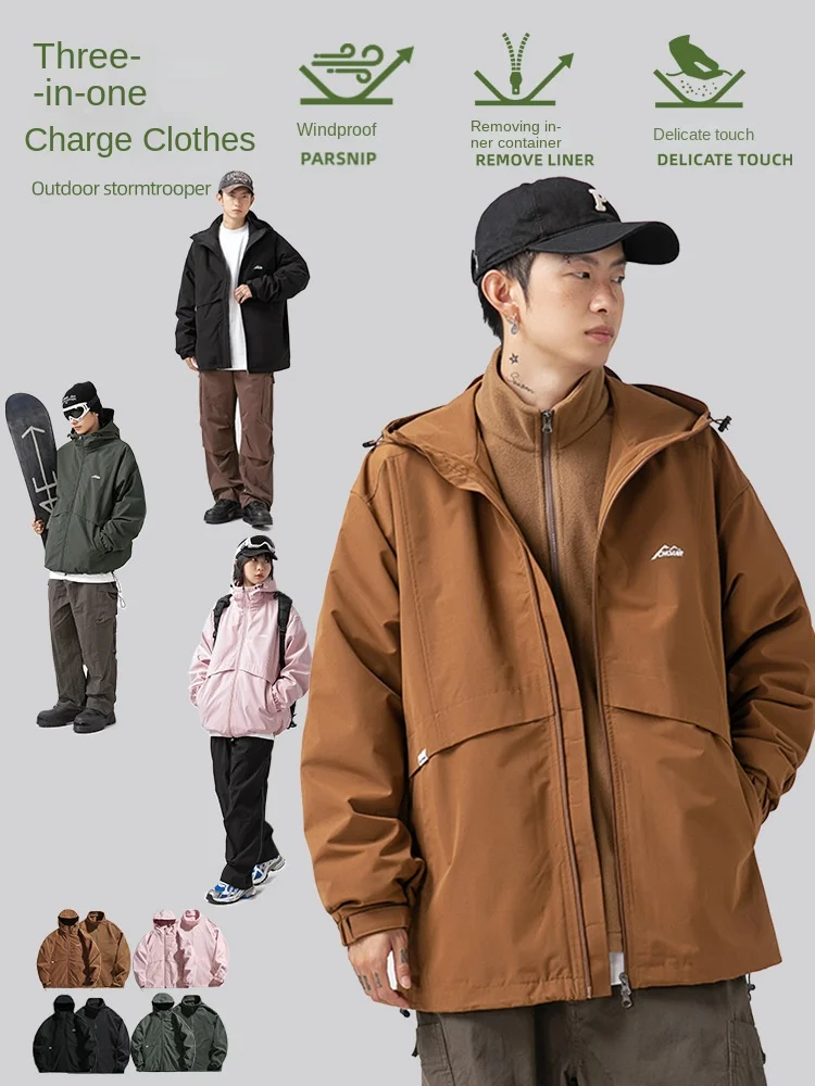 OEM & ODM Autumn Men's Women's Three-in-One Charging Bomber Jacket Detachable Liner CUSTOMIZED R&D Wholesale Sample