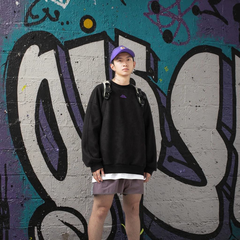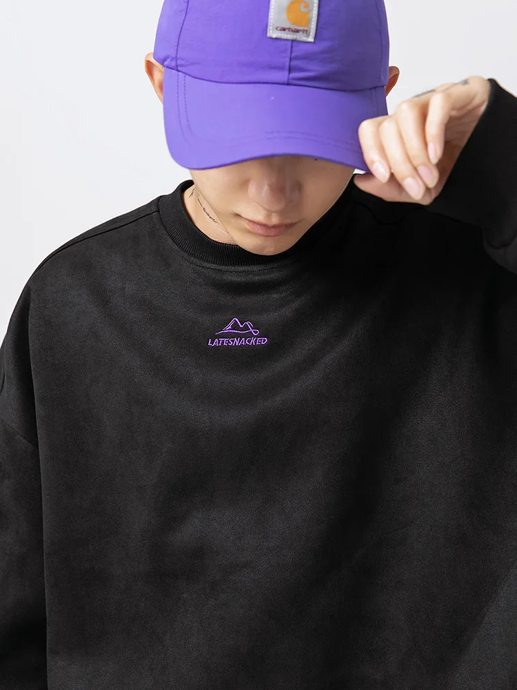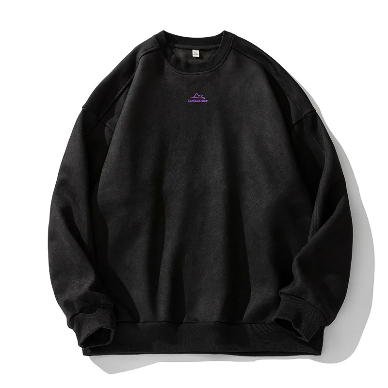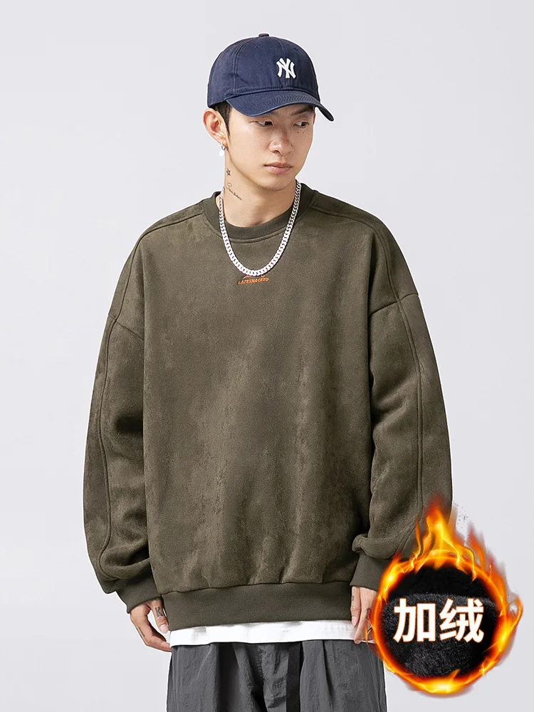 OEM & ODM Autumn Winter New Release Men's 350g Suede Crew Neck Pullover Sweater