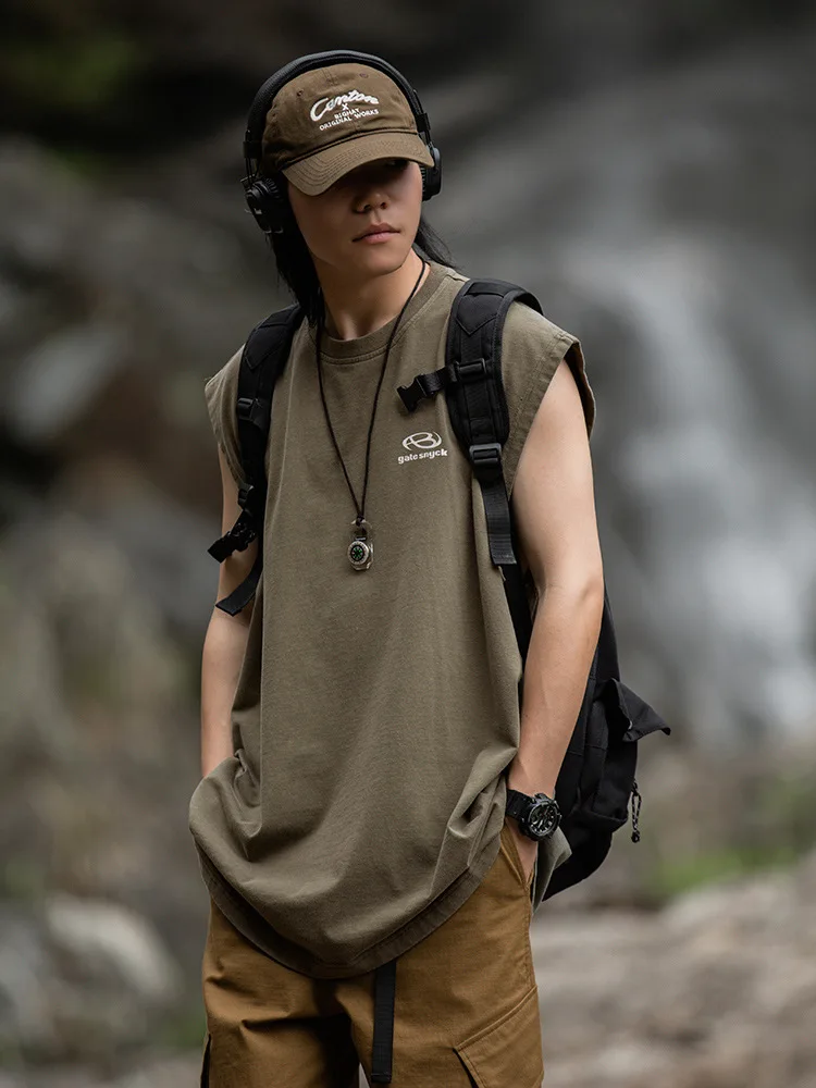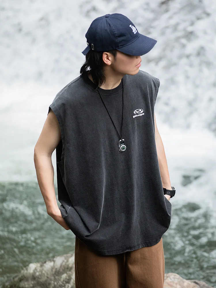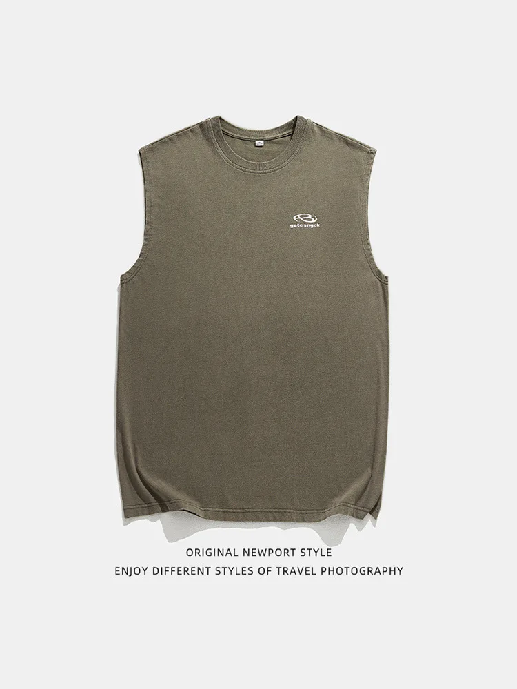 Men's Japanese Retro Style Casual Knitted Waistcoat Sleeveless Cotton Vest Printed 'Q' Brand New Washed Look Plus Size Tank Tops
