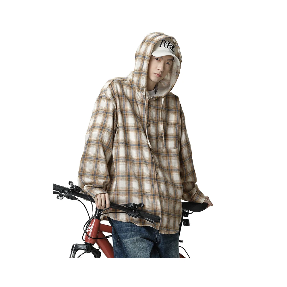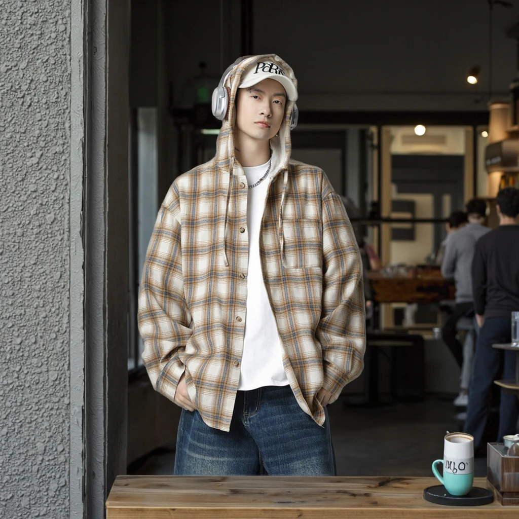 OEM & ODM Production Men's Vintage American Style Casual Loose Plaid Hooded