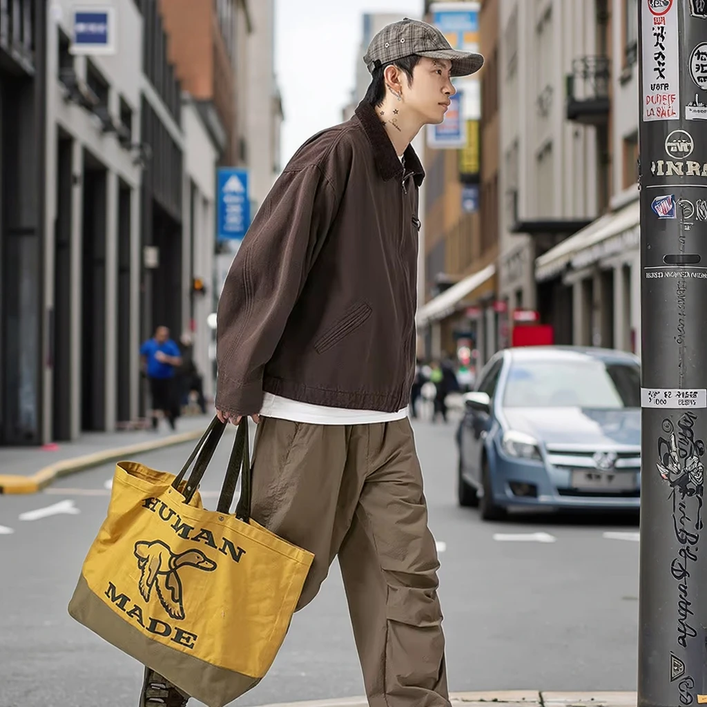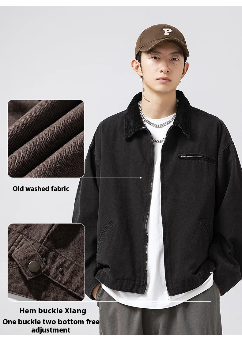 OEM Men's Vintage High Street Canvas Denim Jacket Embroidered Pattern Loose Oversized with Washed Decoration