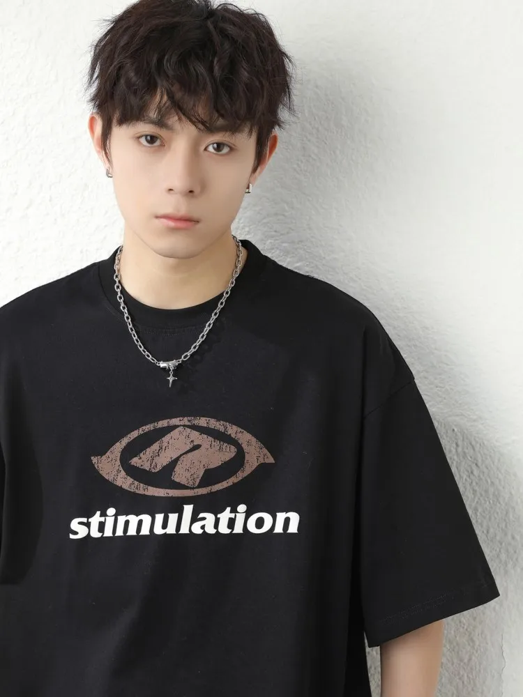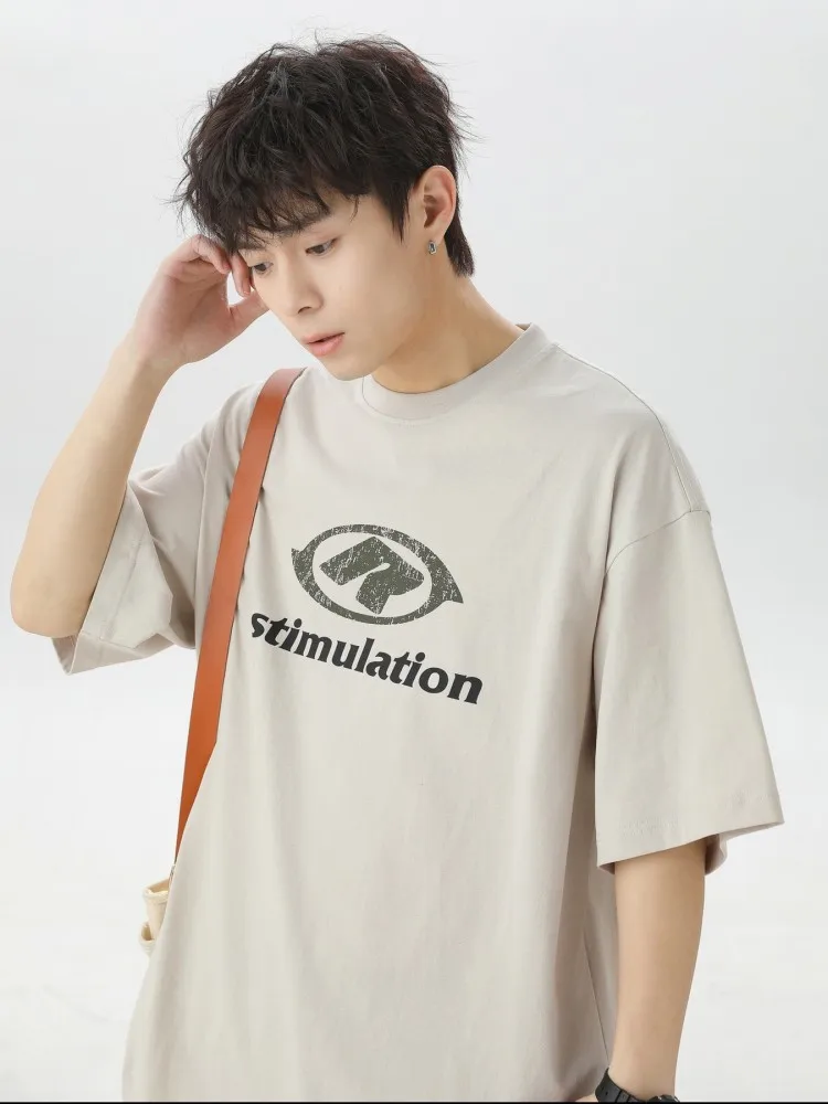 CUSTOMIZED R&D Wholesale Sample High Quality Men's Summer Japanese Style Pure Cotton T-Shirt Contrast Letter