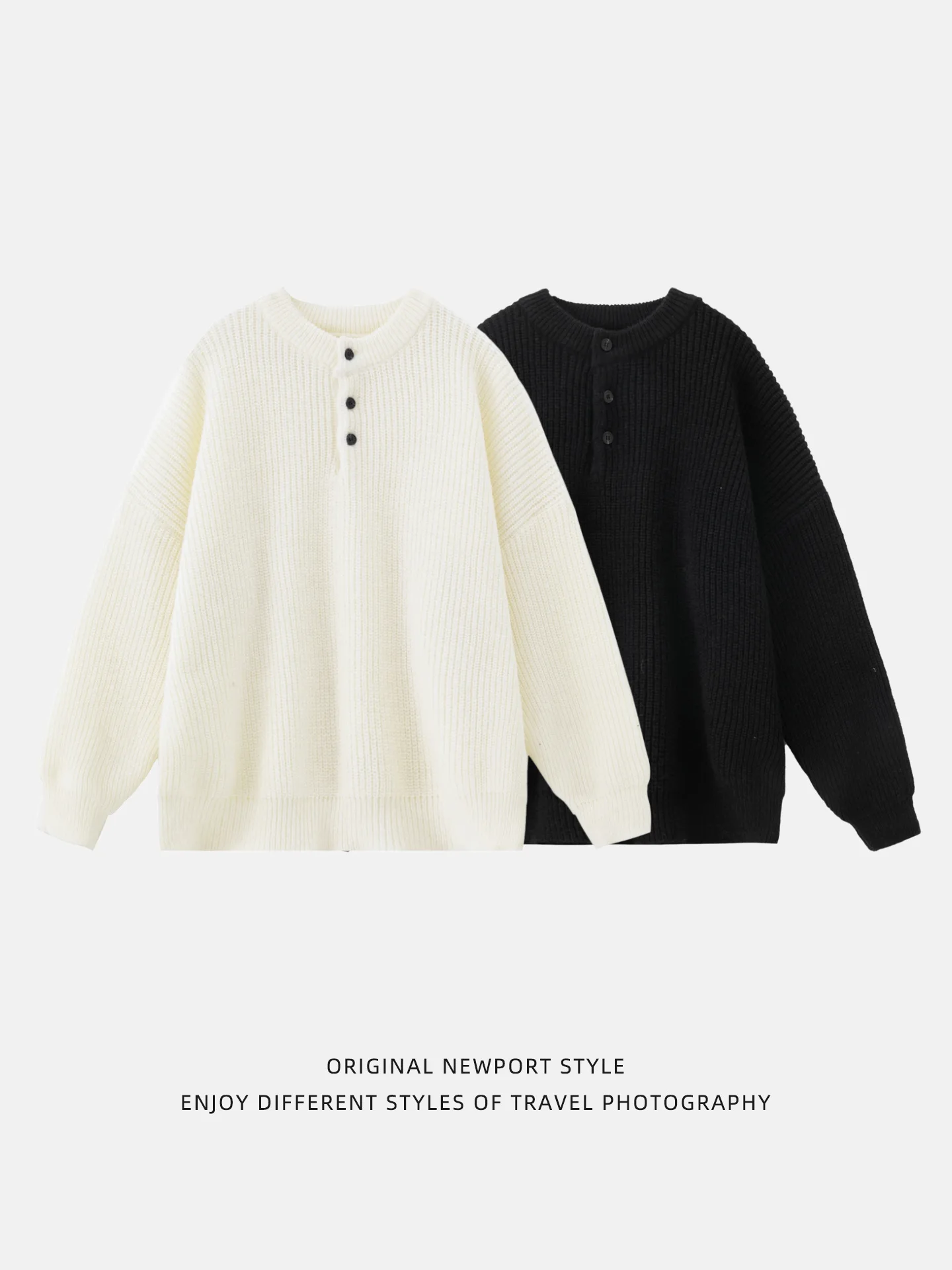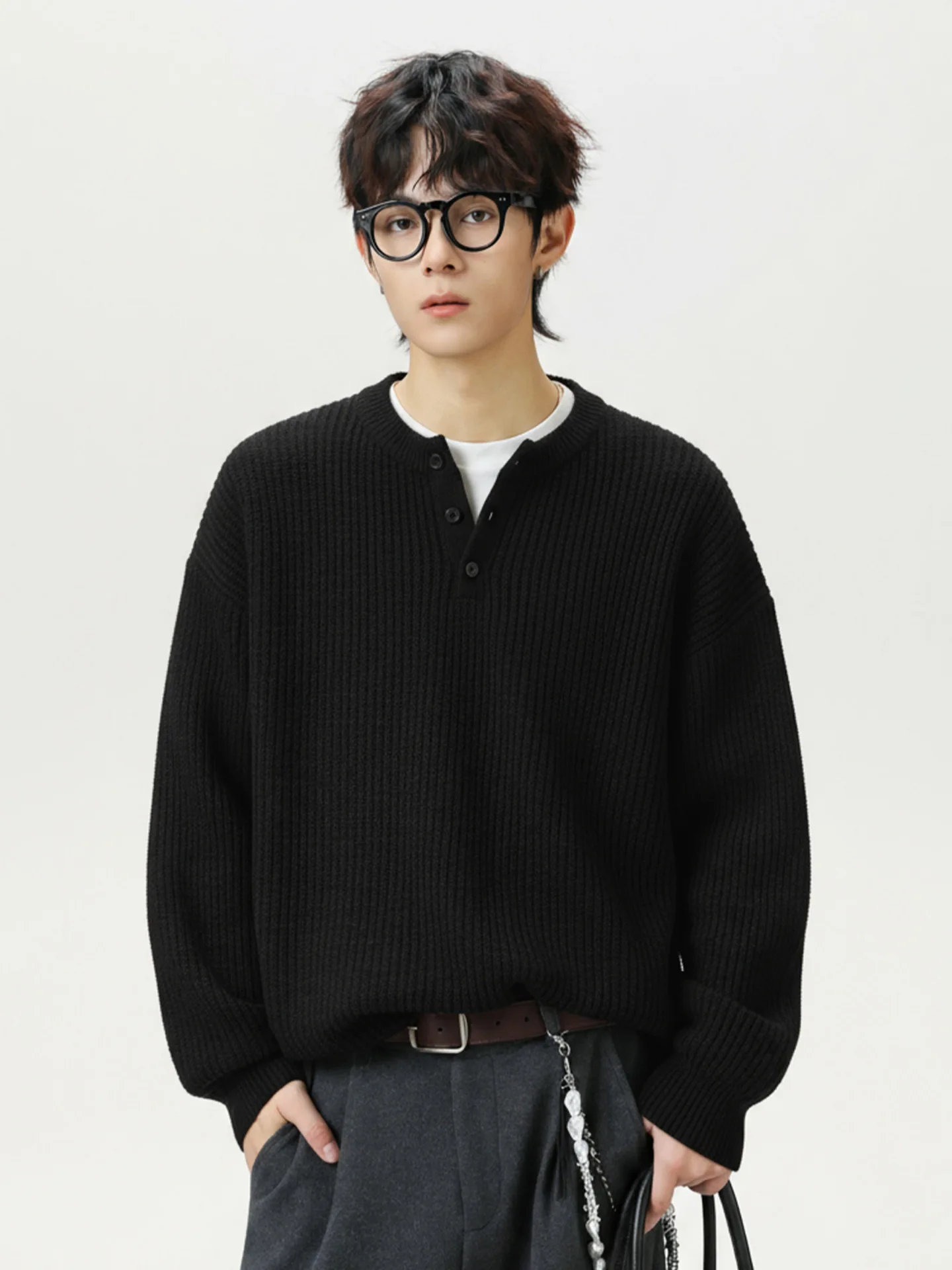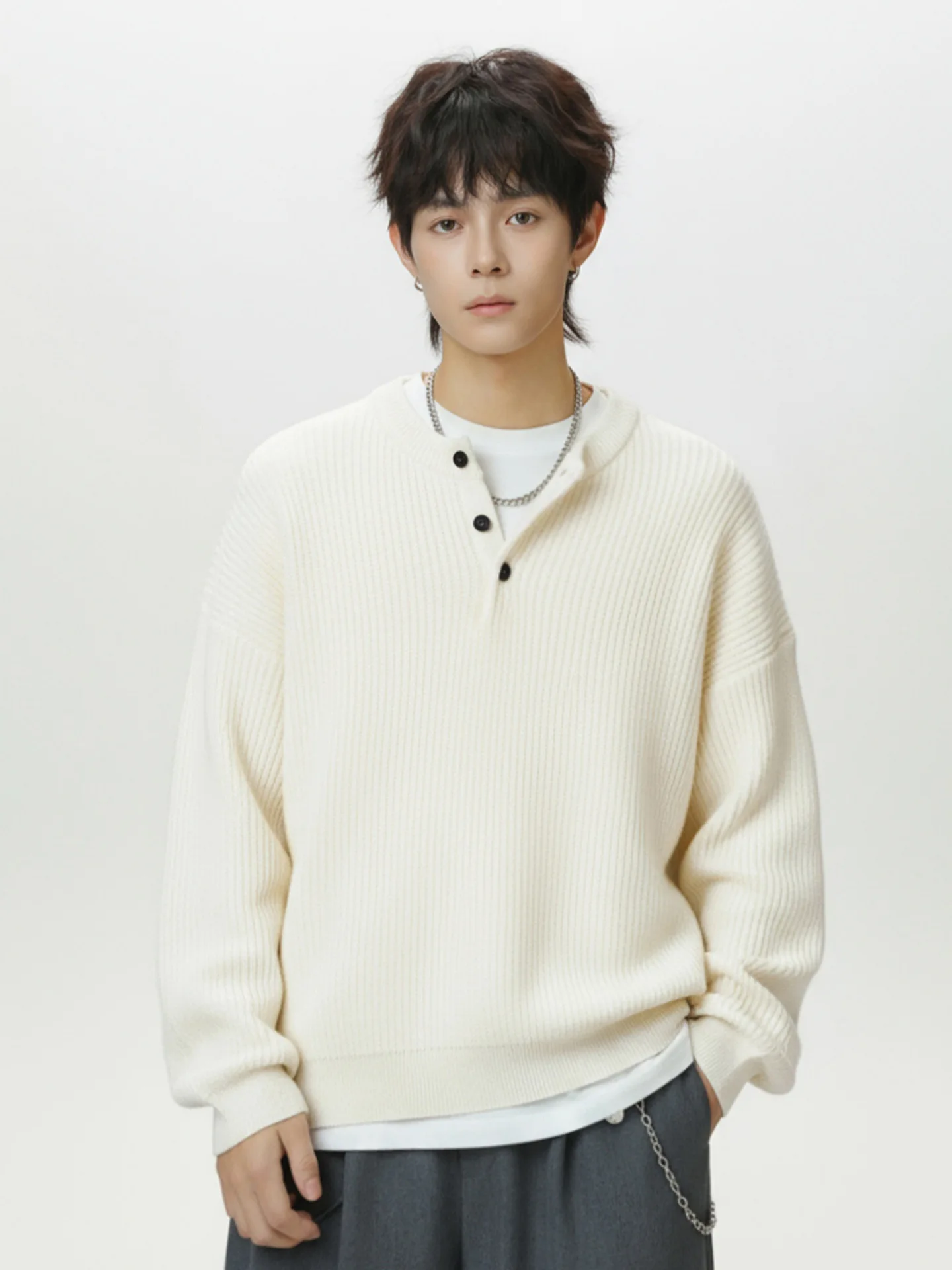Vintage Old Money Half-open Henley Collar Men's Winter Warm Solid Full Sleeve 100% Polyester Anti-pilling 440g Knitted Sweater