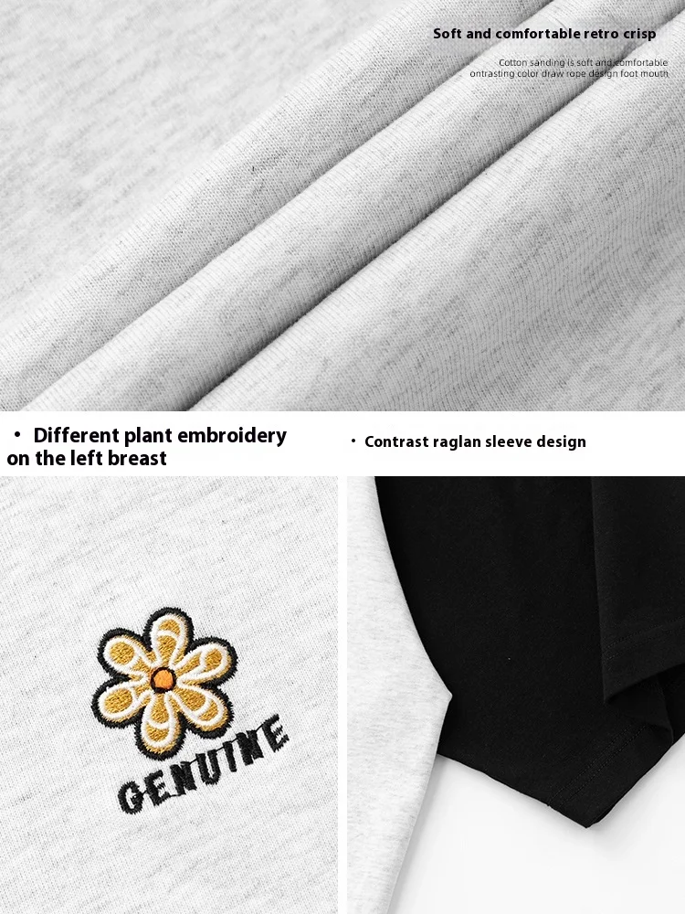 OEM & ODM Casual Men's Couple's Summer Cotton T-Shirt Exquisite Embroidered Raglan Sleeve Design