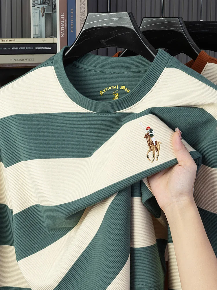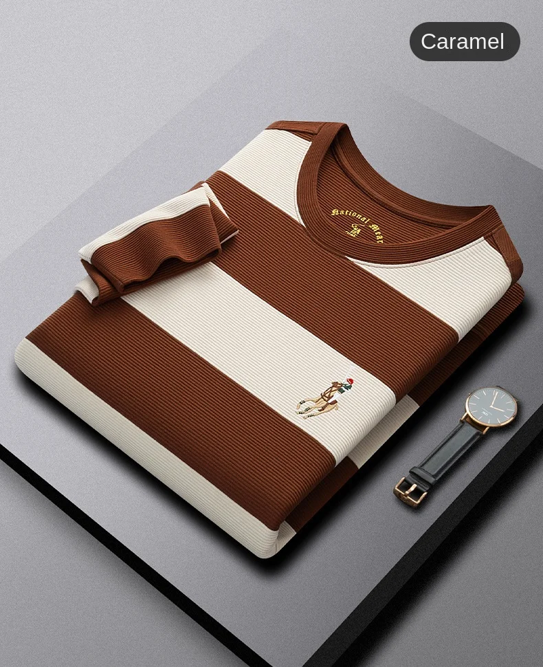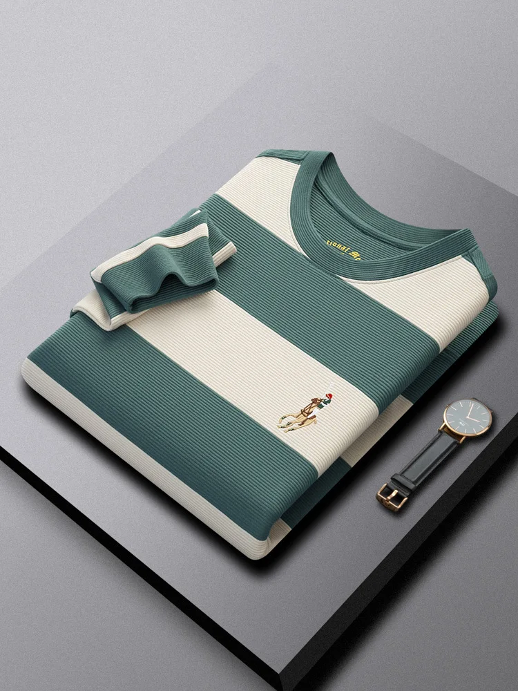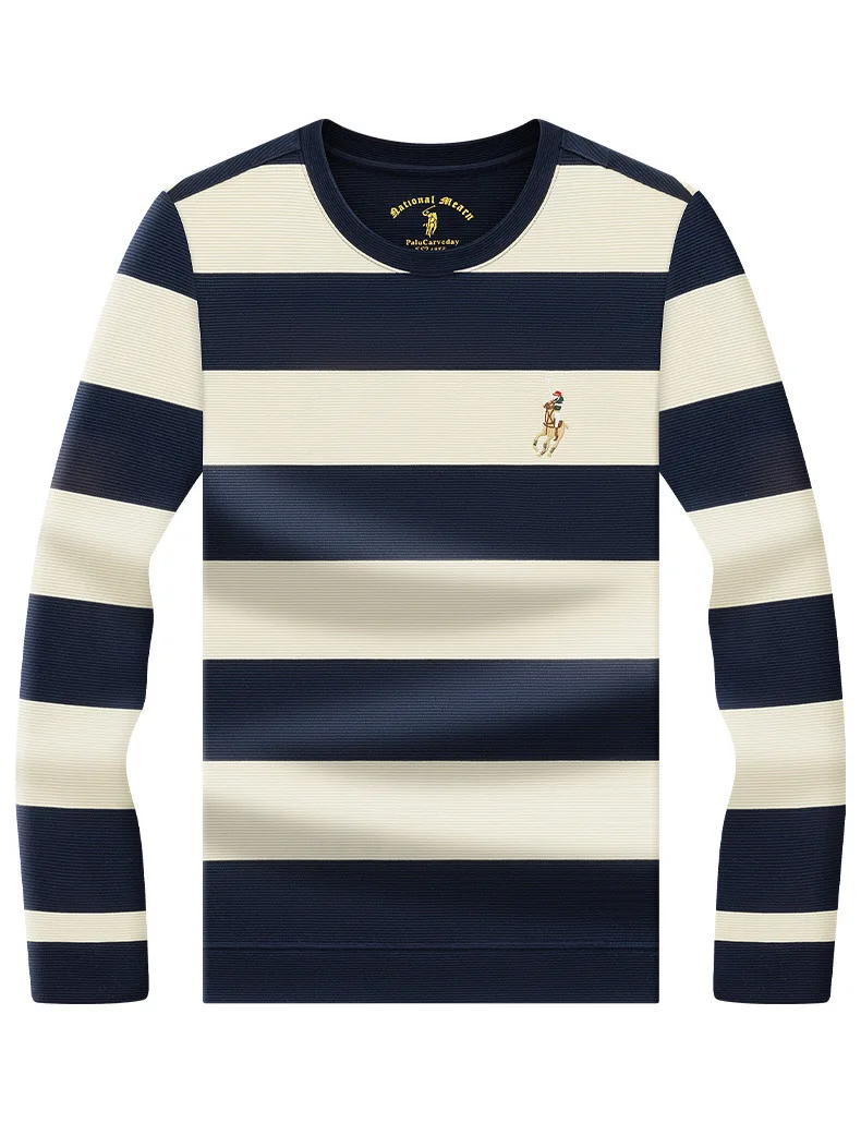 Men's Crewneck Pullover Long-sleeved Casual Blank Solid Yarn Dyed 100% Cotton Jersey Regular Fit Anti-pilling T-shirt