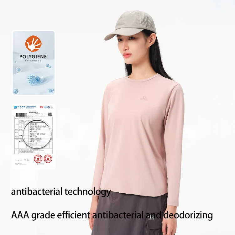 PELLIOT Quick-drying T-shirt Women's Outdoor Antibacterial Anti-wrinkle Breathable Long T-shirt Skin-friendly Sports Top