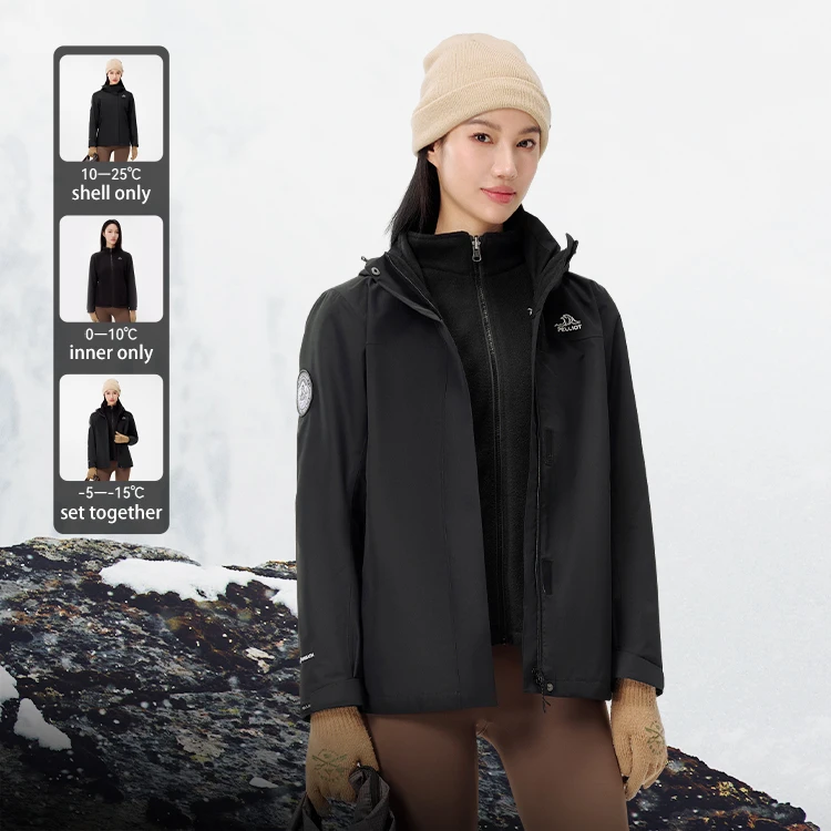 PELLIOT With 265g Fleece Plus Size Women Outdoor Sports Coats 20000mm Waterproof Rain Outdoor 3 in 1 Jackets