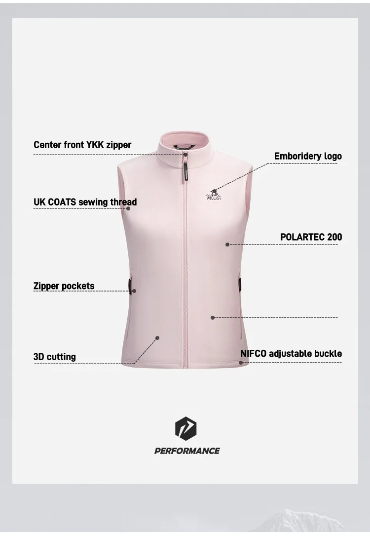 PELLIOT Outdoor Fleece Vest Women's Breathable Lightweight Warm Hiking Polartec 200 Tracking Fleece Vest