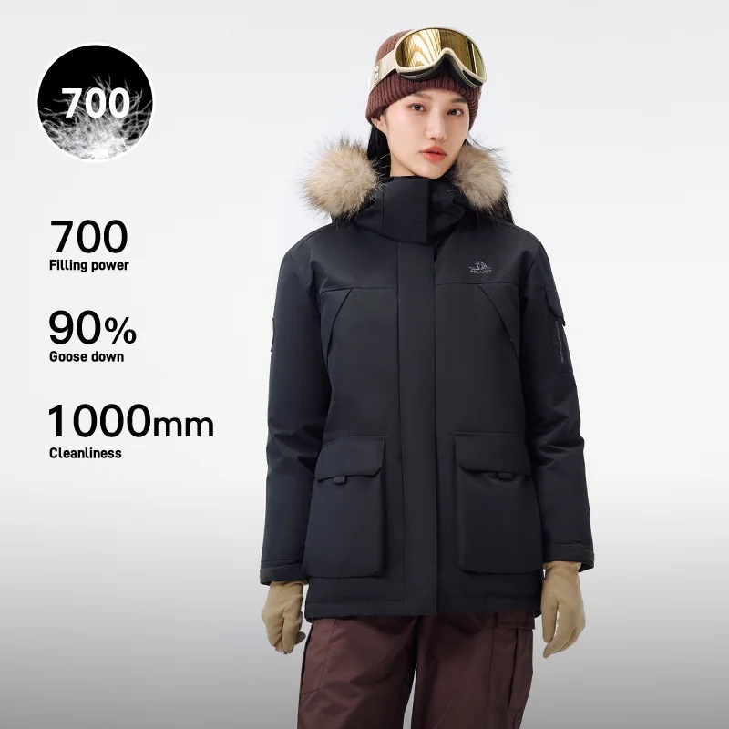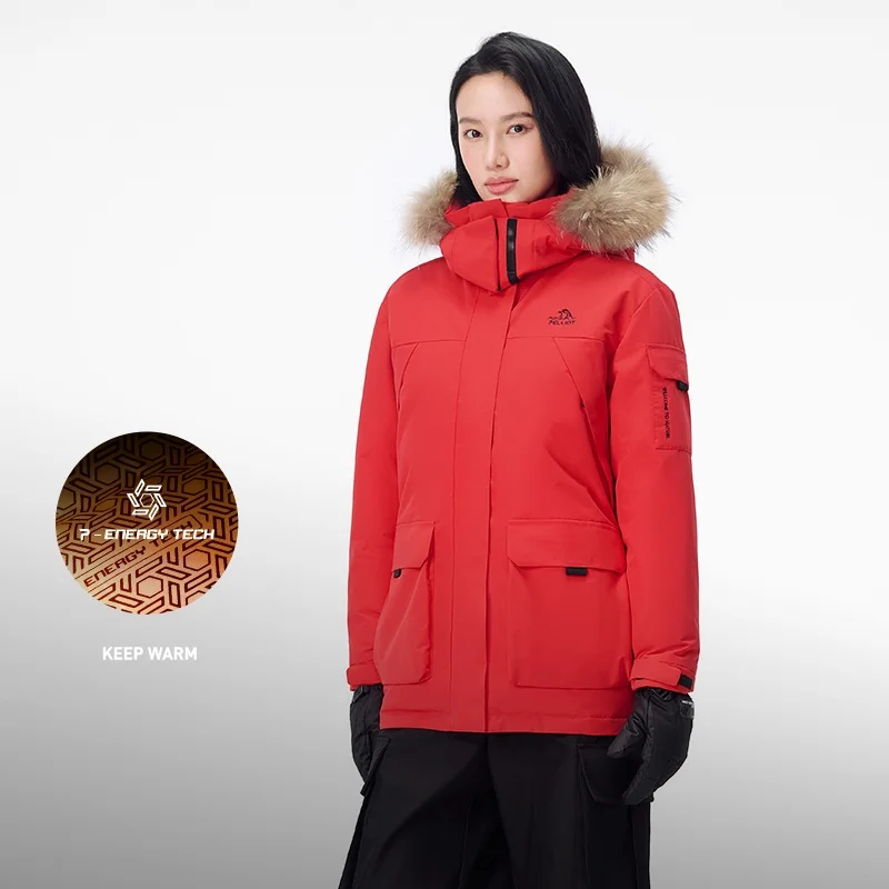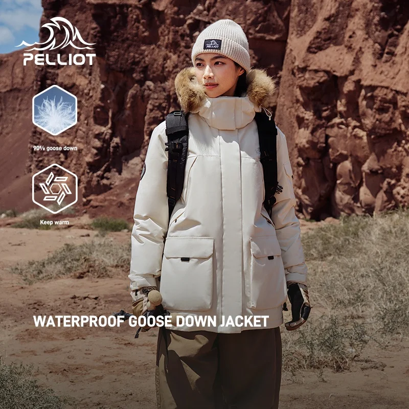 PELLIOT Women's Winter Warm Parka Down Jacket 700 Filling Power Goose Down Outdoor Hiking Waterproof With Fur Hood Down Coat
