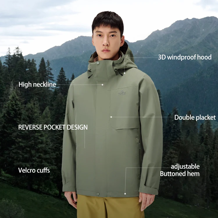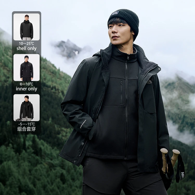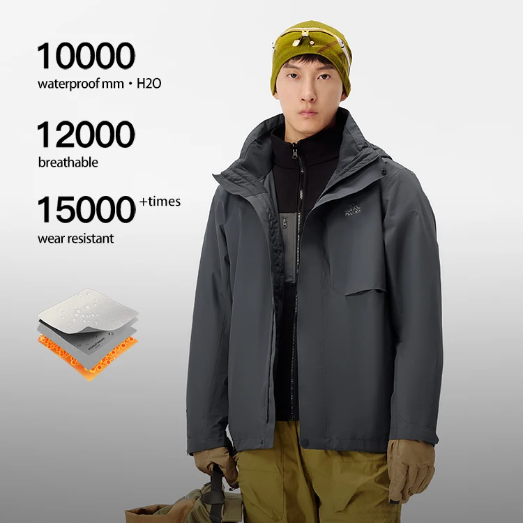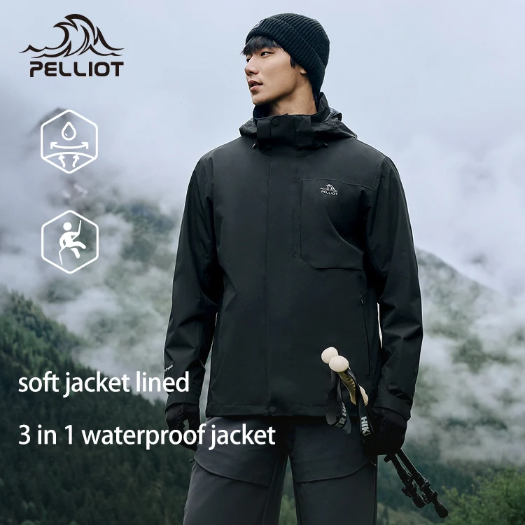 PELLIOT Outdoor Winter Warm Windproof Adjustable Hood Soft Shell Liner Men's 3 in 1 Waterproof Mountaineering Hardshell Jacket