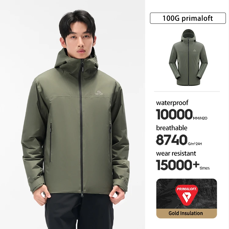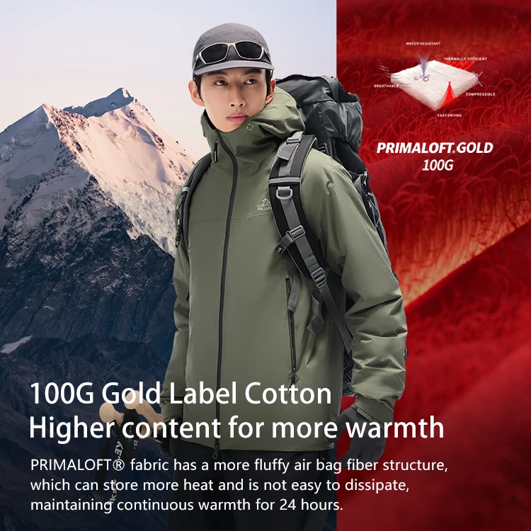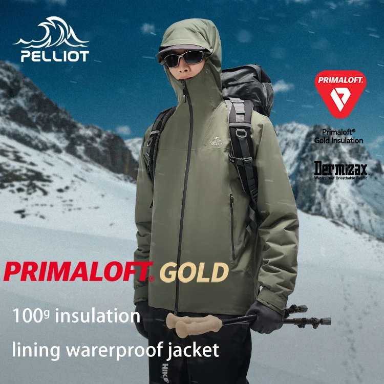 For PELLIOT Men's 100g Primft Gold Insulation Outdoor Jacket Dermizax Waterproof & Windproof Toray Fabric Zipper for Hiking
