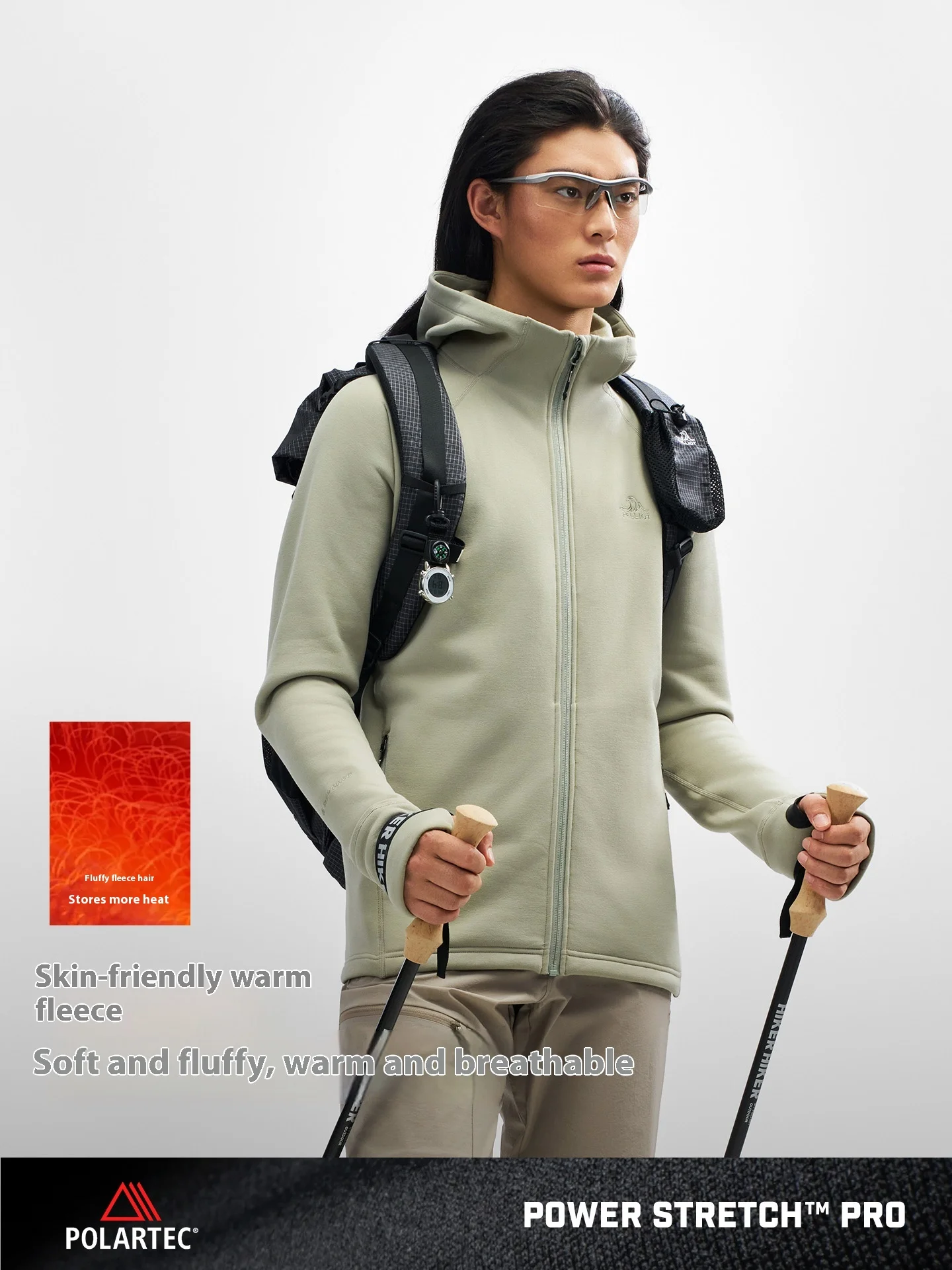 Pelliot Men's Fleece Jacket P Series New Hooded Breathable Sports Cardigan for Winter Outdoor Hiking Mountaineering Knitted