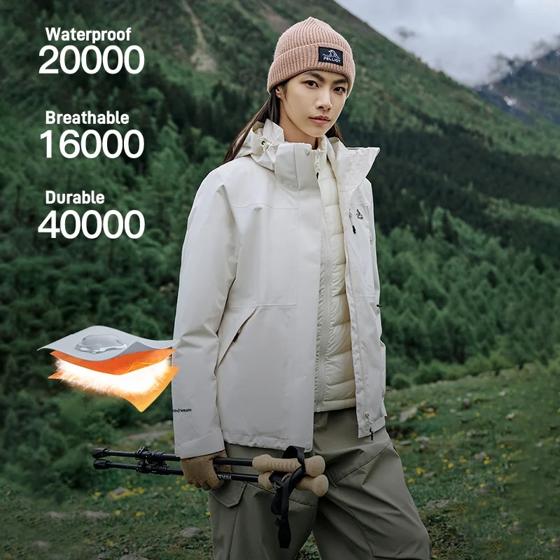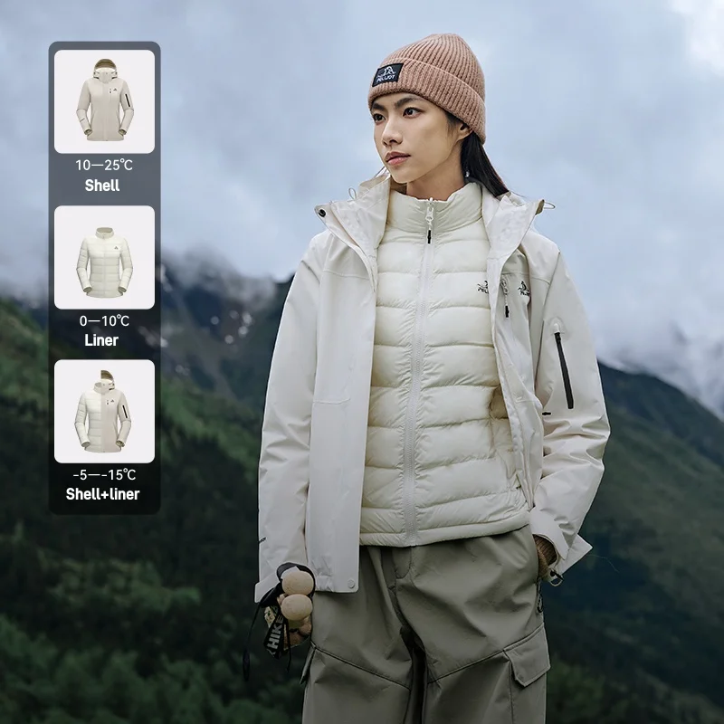 Women's Three-in-One Goose Down Liner Toray Fabric 20000mm Outdoor Waterproof Jacket for Winter Mountaineering & Hiking