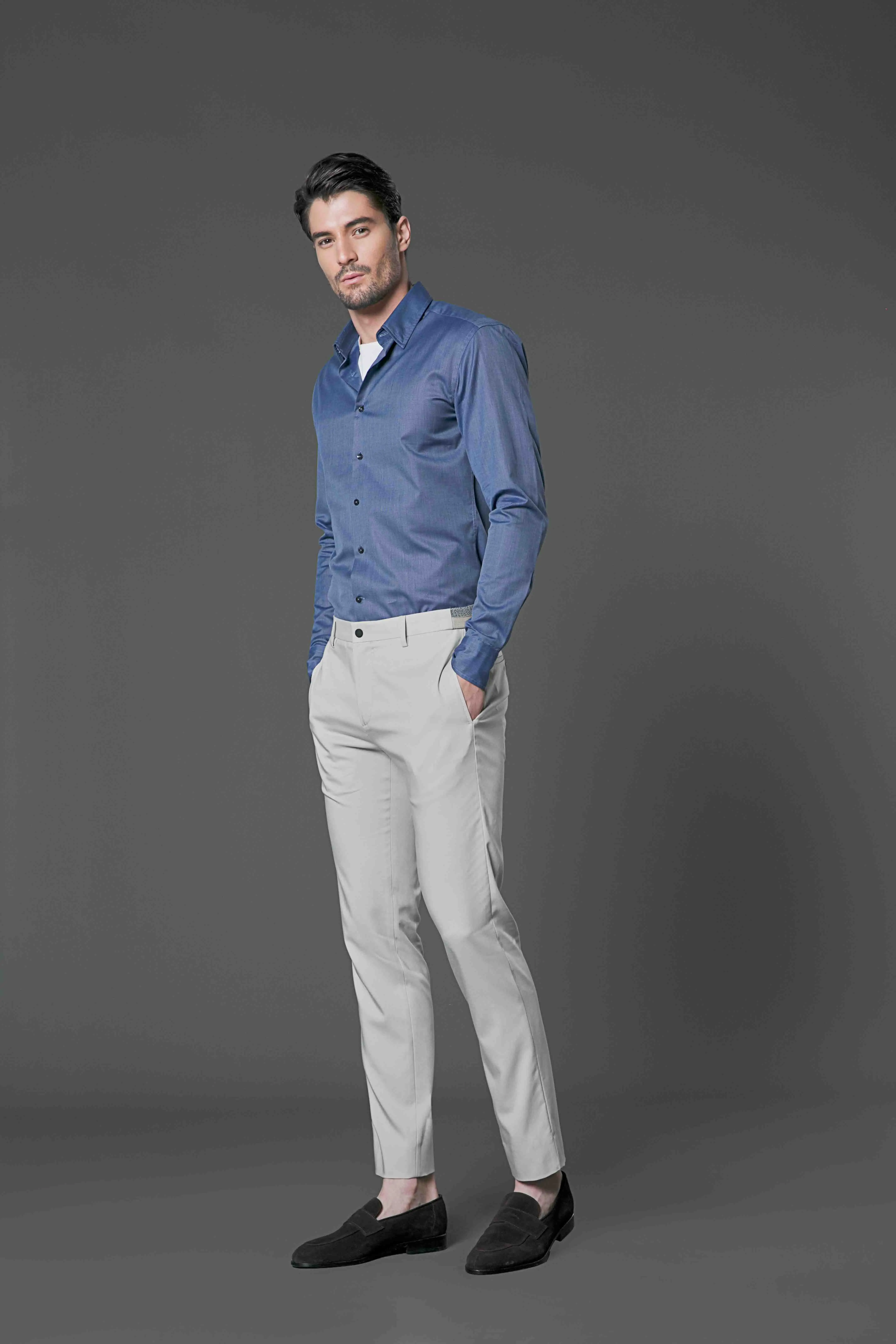 High Quality Classic Business Casual Slim Trousers White Formal Men Pants