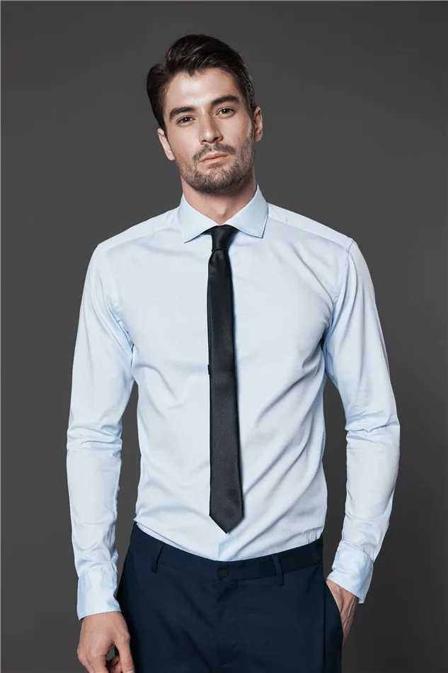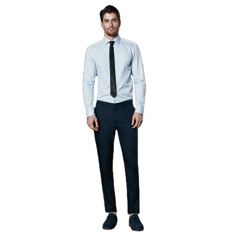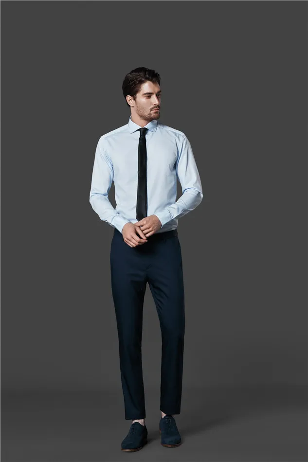 Custom Made Bespoke MTM Hot Selling Premium Texture 100% Cotton Blue Men Long Sleeve Office Shirts