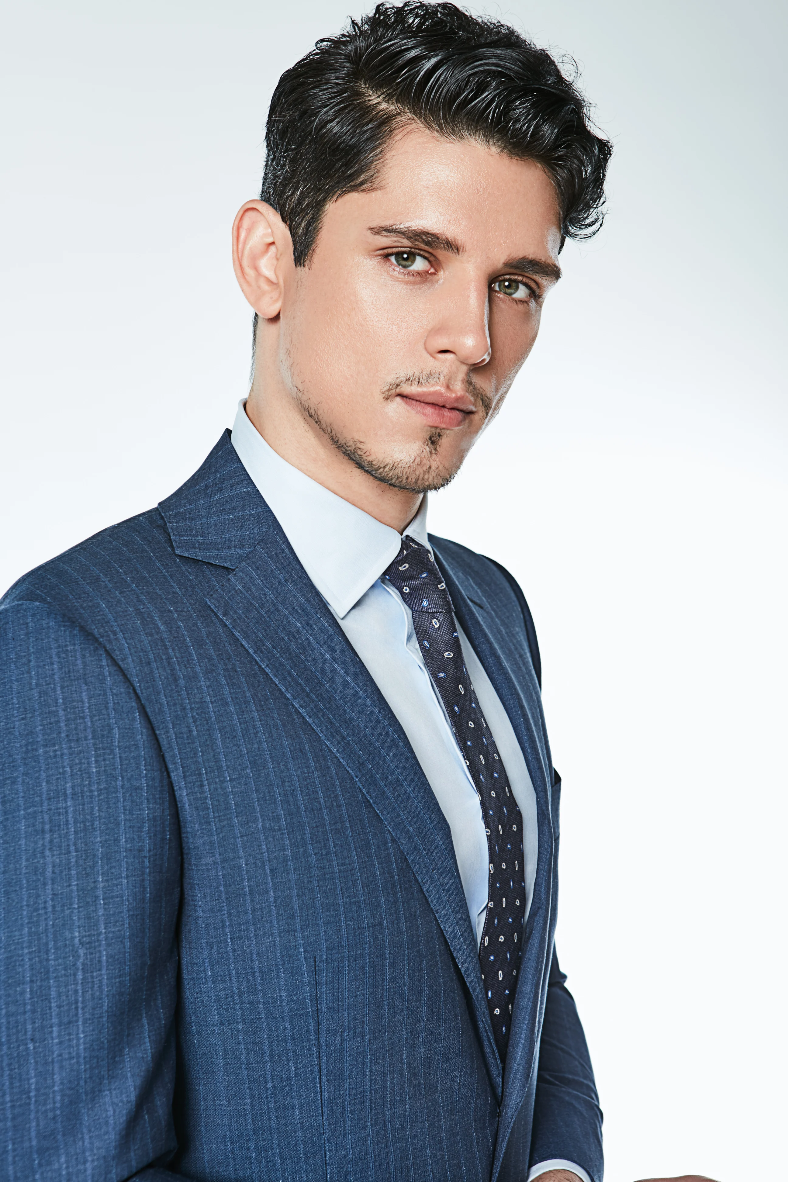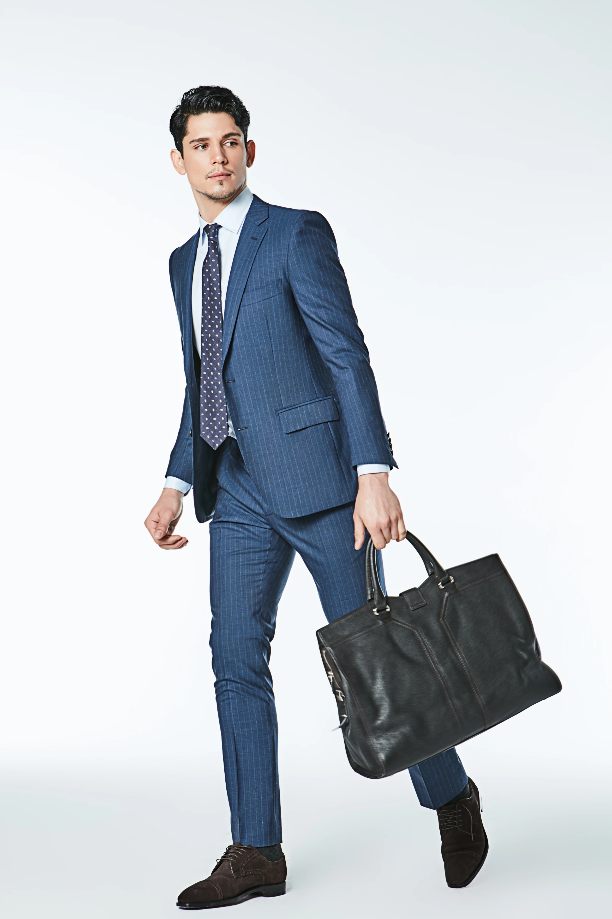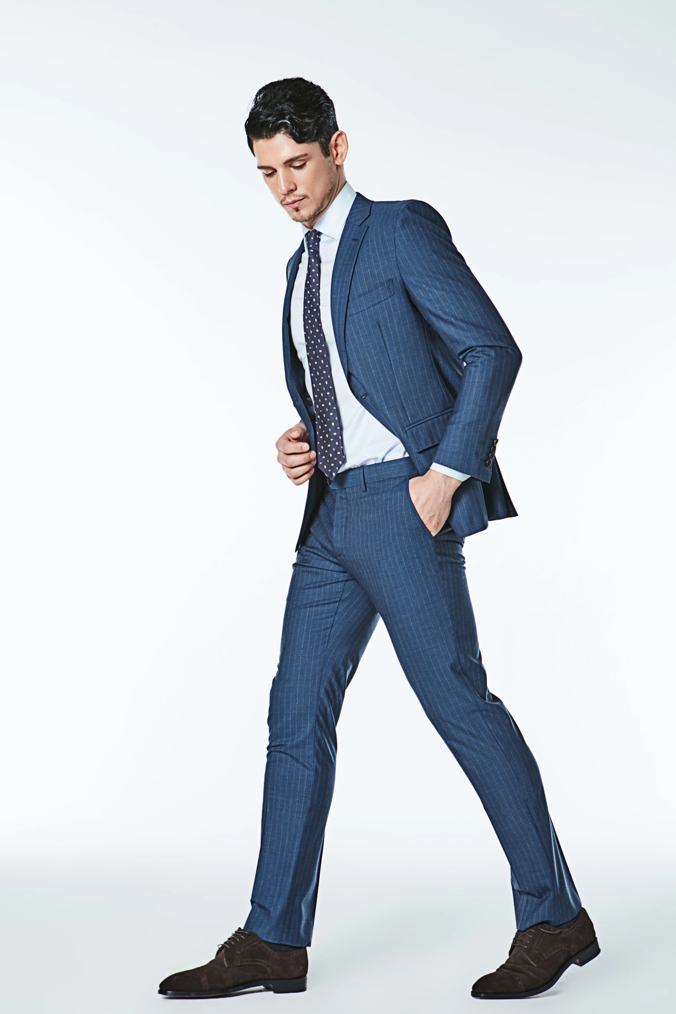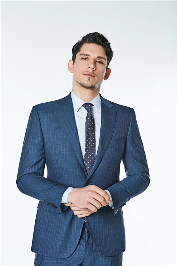 Fashion Good Quality Business Formal Casual Coat Pants Blue Stripe Slim Fit Suits Set for Men