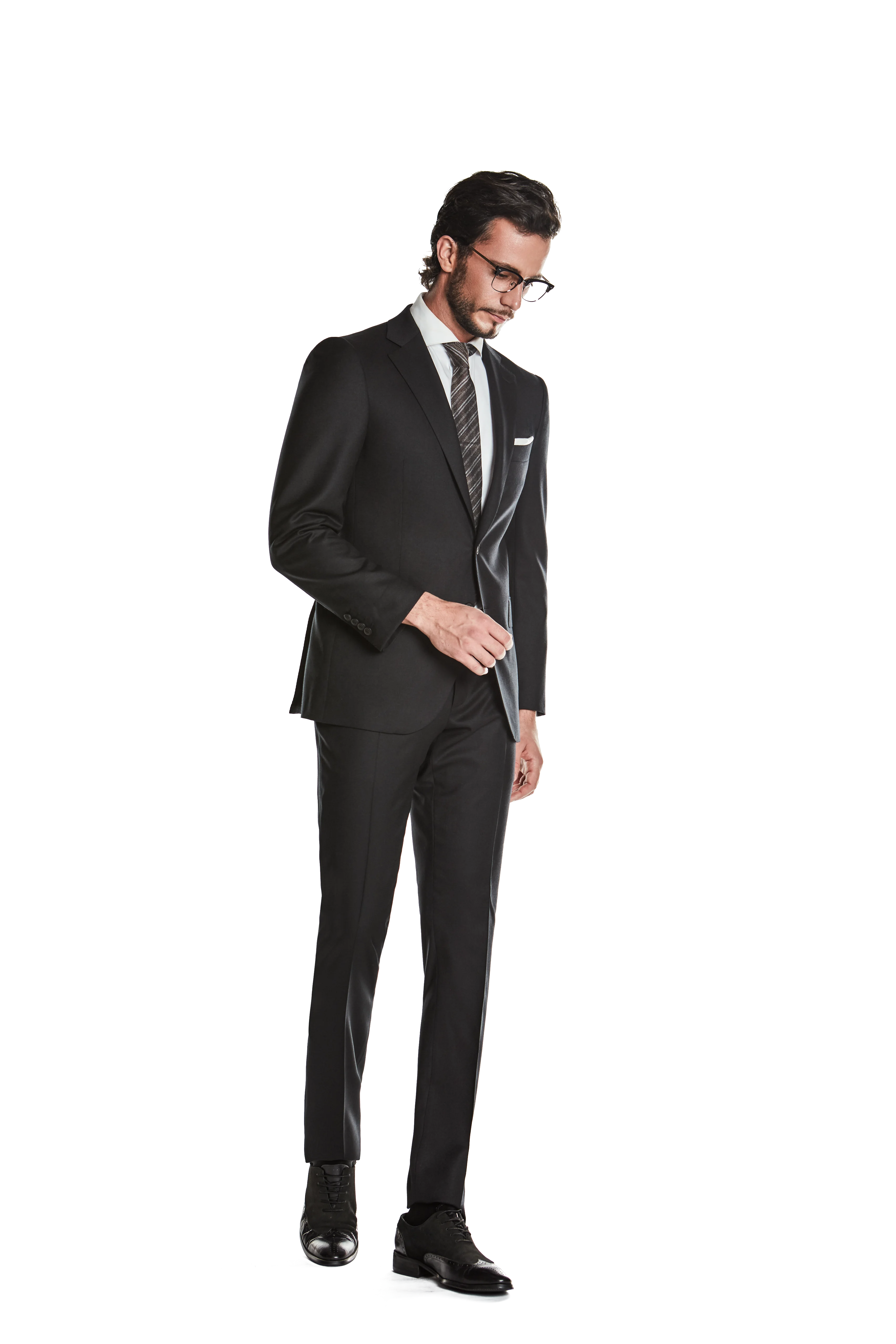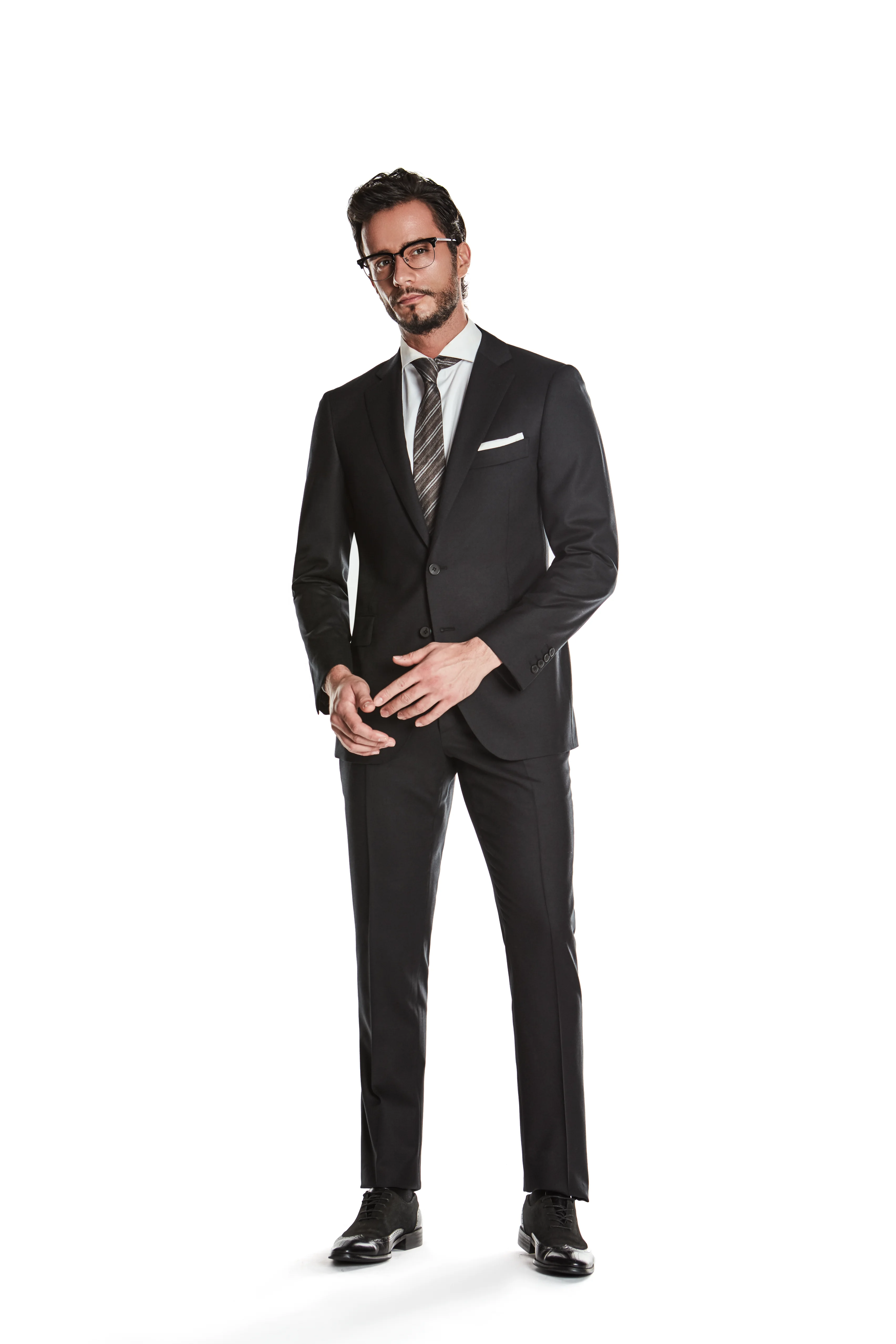 Hot Sale Custom 100% Wool Formal Business Style 2 Pieces Pant Blazer Coat Black Men Dress Suits