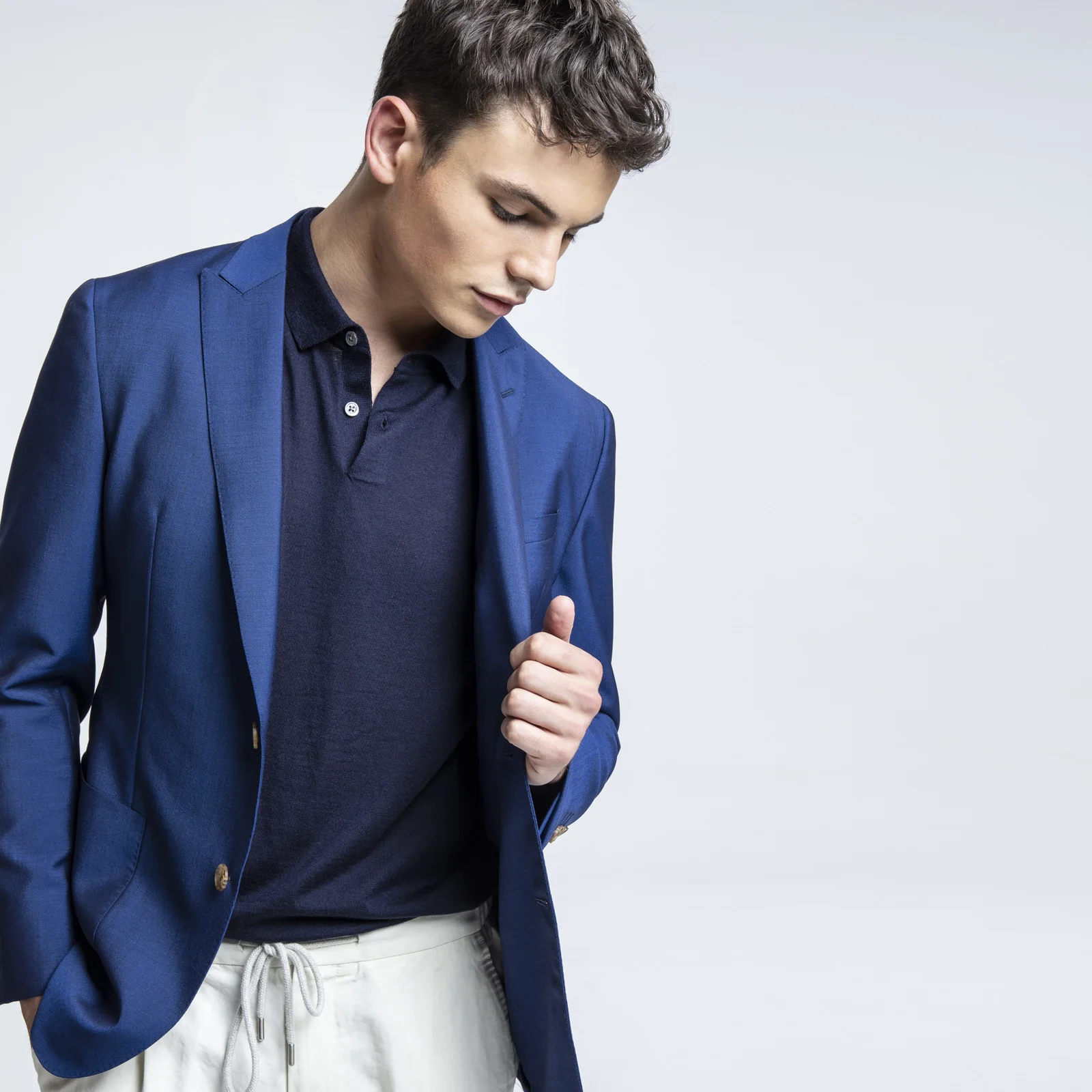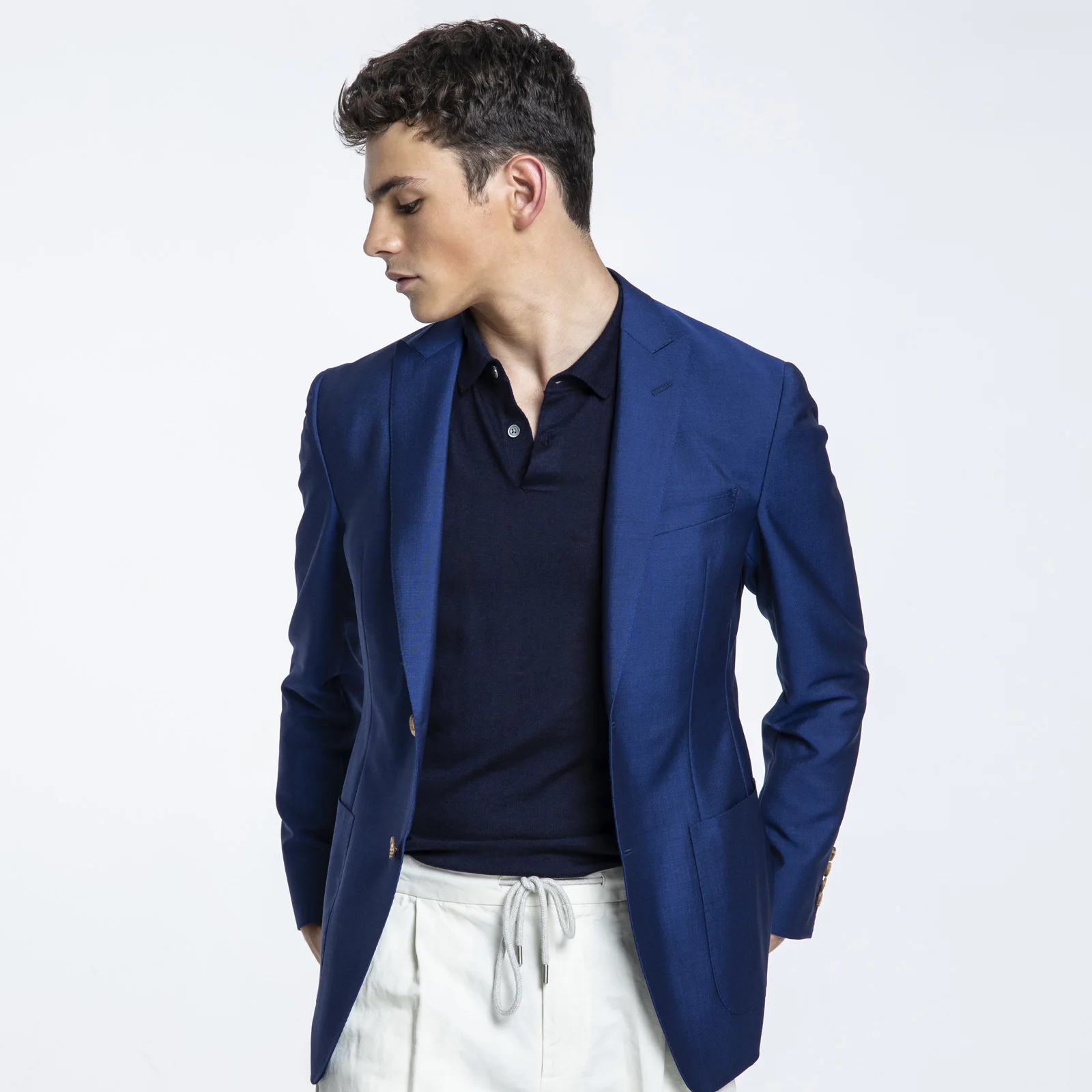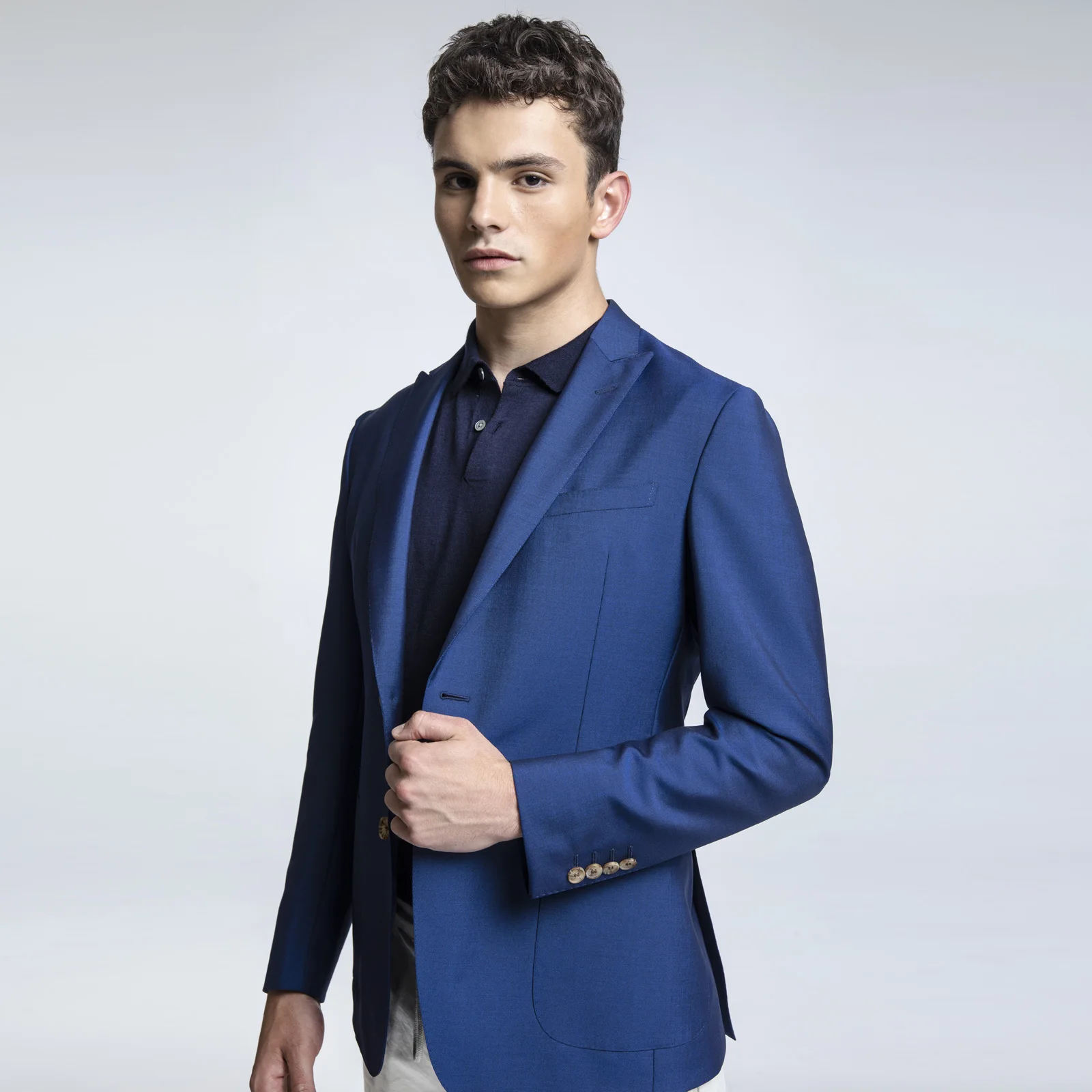 Hot Selling Customize Luxury Fashion Golden Button Blue Slim Fit Suit Blazers for Men