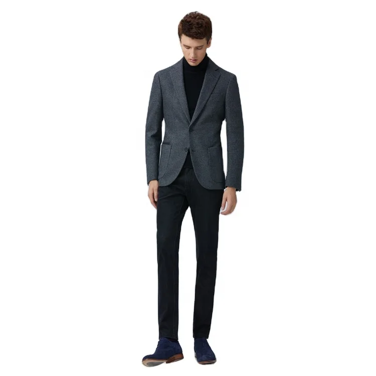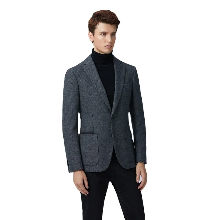 Fashion Casual Spring Autumn Lattice Pocket One Piece Blazers Suit Coat Jacket for Men