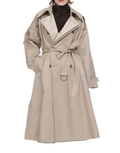 Women's Light Luxury Acetate Windbreaker Spring New Polyester British Style Long Coat Lapel Collar Plain Dyed Trench Outerwear