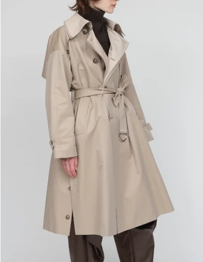 Women's Light Luxury Acetate Windbreaker Spring New Minimalist British Style Long Coat Lapel Collar Plain Dyed Trench Outerwear