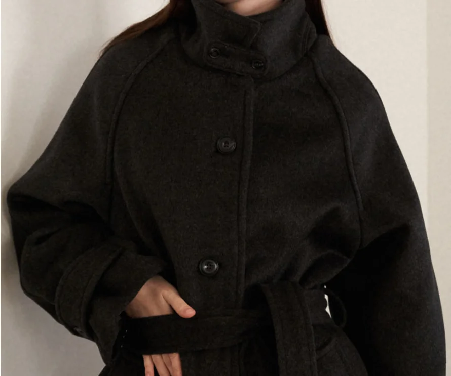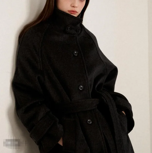 British Luxury Ladies Coat New Fashion Vintage Style High Quality Woolen Single Breasted Winter Elegant Long Trench Wool Black