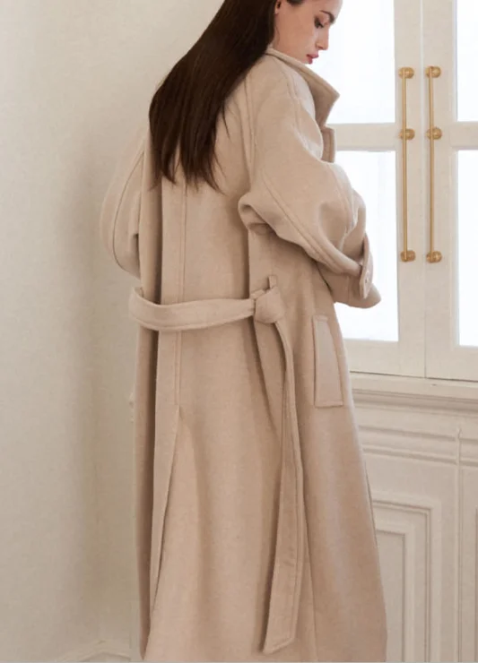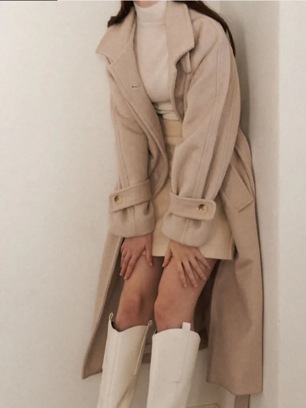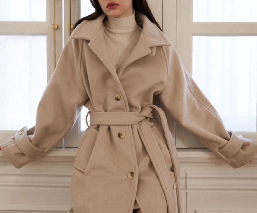 British Luxury Ladies Coat New Fashion Vintage Style High Quality Woolen Single Breasted Winter Elegant Long Trench Wool Logo