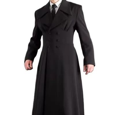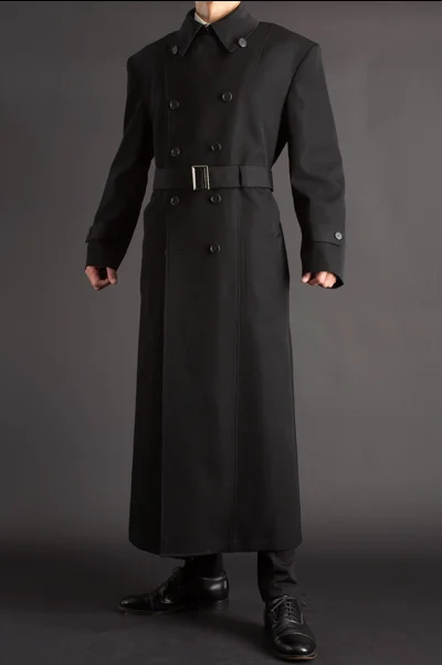 Latest Design High Quality Black Color Men's Long Woolen Trench Overcoat Winter Coat Wool Men Double Breasted Waistband Overcoat